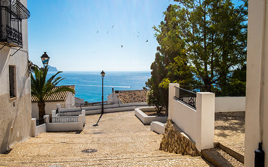 It is known as the Dome of the Mediterranean and is considered one of the most beautiful villages on the Costa Blanca due to the beauty of its cobbled streets, white houses, pebble beaches, and the spectacular views from its historic center.