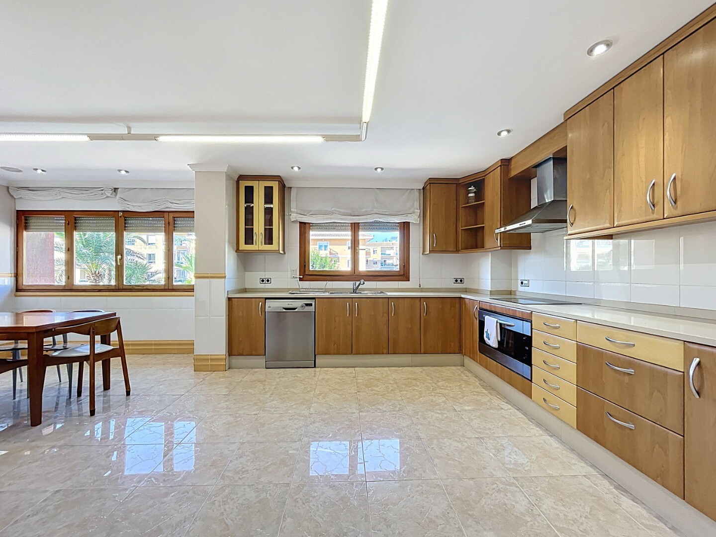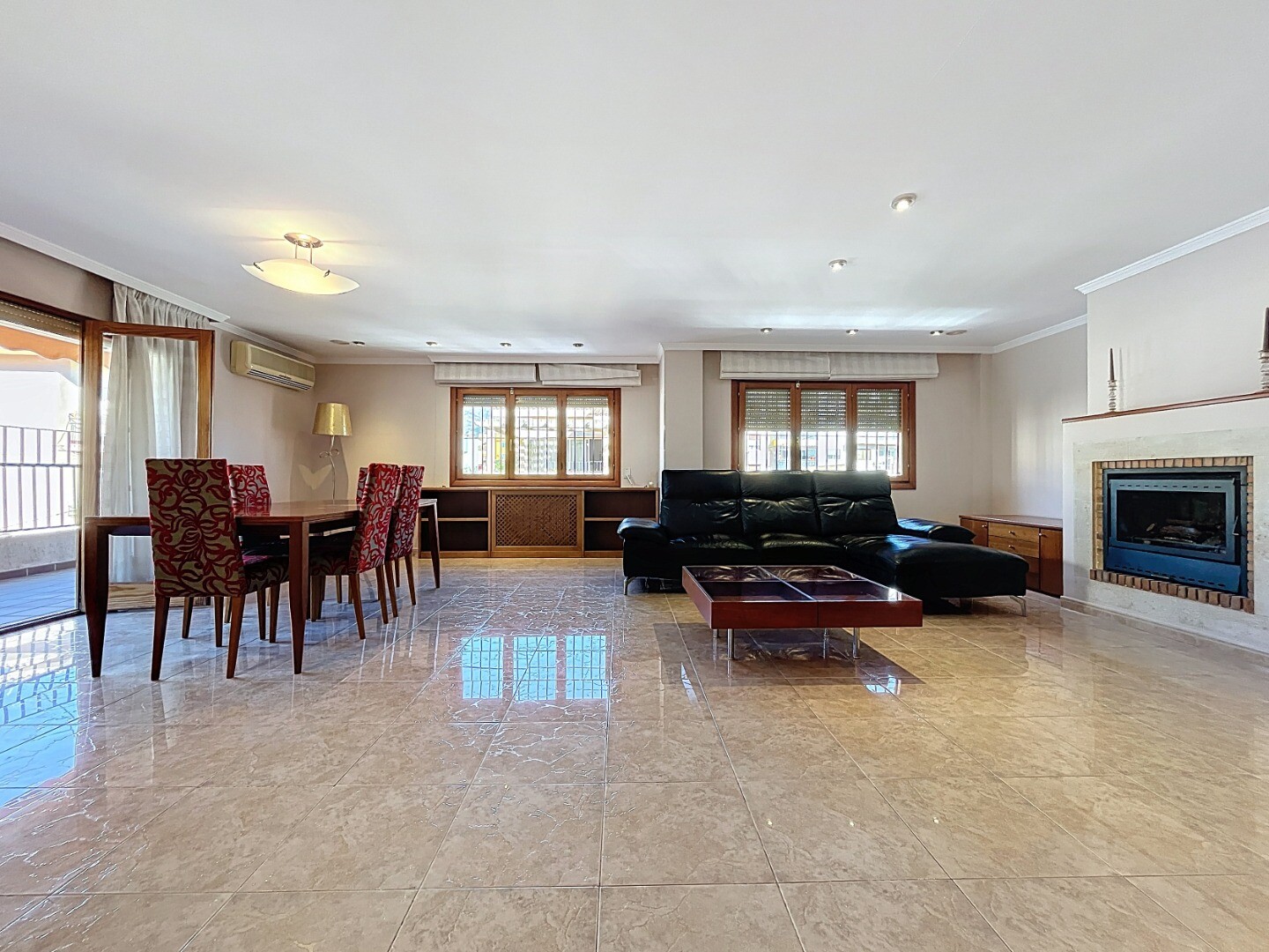 A 60 m² living-dining room with abundant natural light.