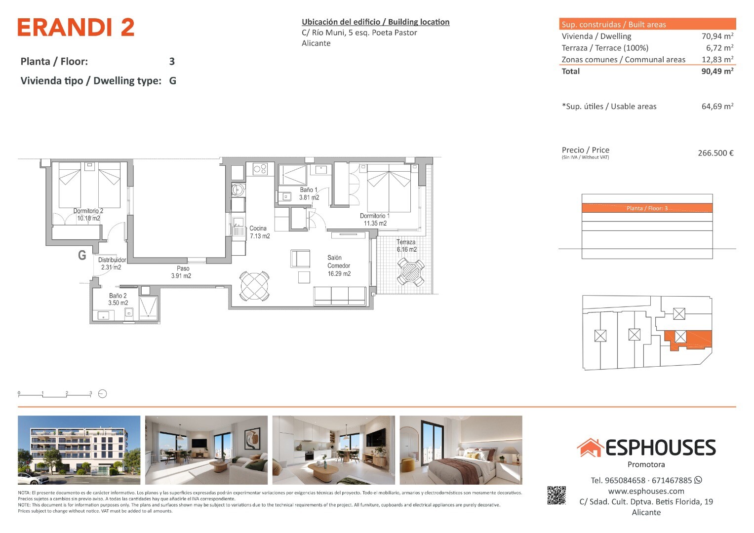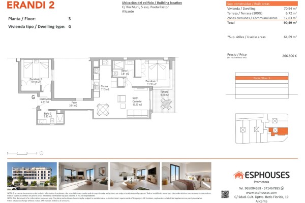 Located on the third floor of Edificio ERANDI 2, this new-build property offers a modern and functional design with excellent south orientation, providing natural light all day long. It is situated in La Florida, one of Alicante’s most emblematic and well-connected neighbourhoods.