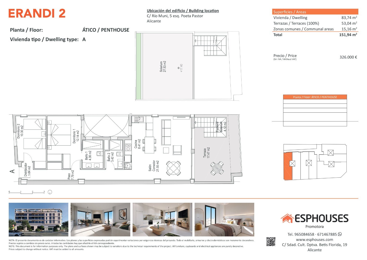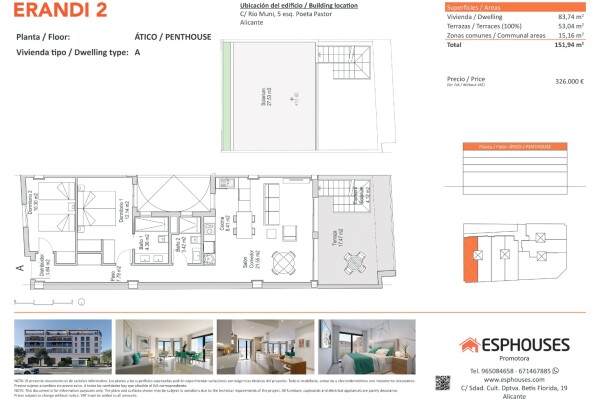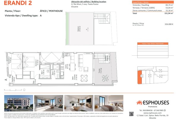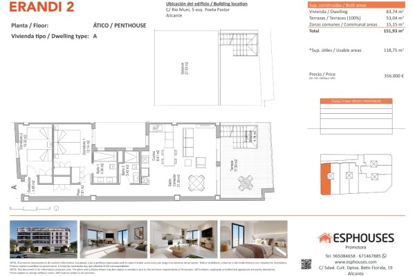 This exclusive new-build penthouse is located on the fourth floor of the ERANDI 2 building and stands out for its generous outdoor spaces and west-facing orientation, ideal for enjoying natural light all afternoon. The property offers 85.52 m² of built area, including two bedrooms with fitted wardrobes, two bathrooms, and a bright living-dining roo...m with an open-plan kitchen in a modern style.