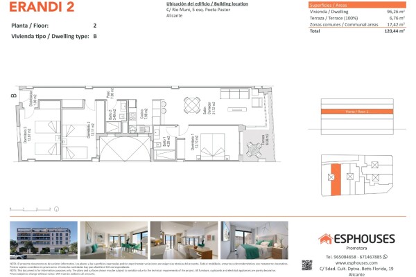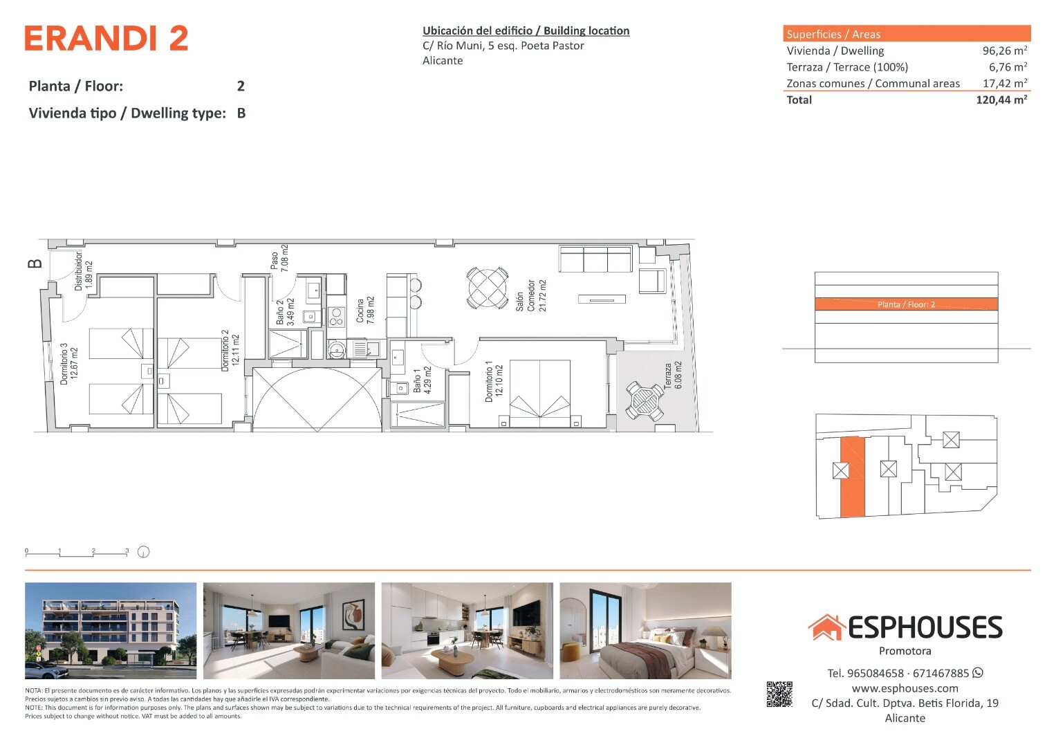 Located on the second floor of the Edificio ERANDI 2, this new-build flat combines design, comfort and an unbeatable location in the La Florida neighbourhood, one of the most established and well-connected areas of Alicante. With a built area of 96.26 m², the property offers three bedrooms with fitted wardrobes, two full bathrooms, a living-dining ...room with an open-plan kitchen and a 6.76 m² west-facing terrace, ideal for enjoying the natural light in the afternoon.