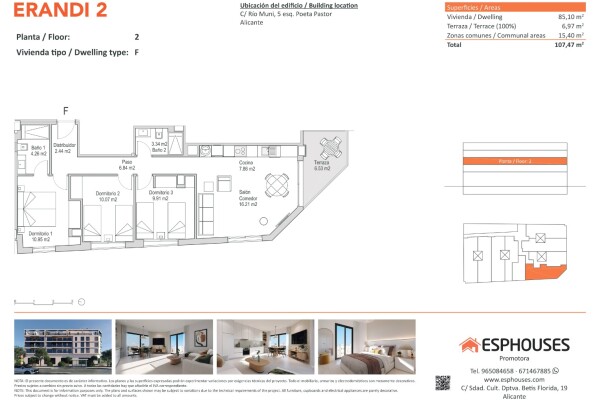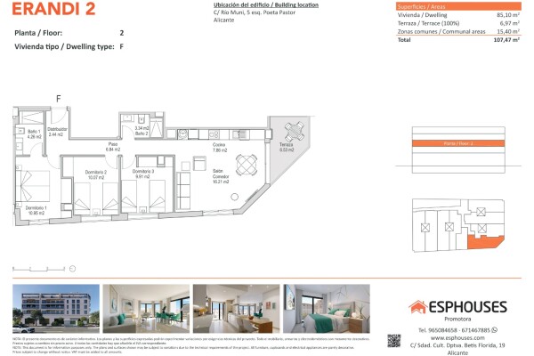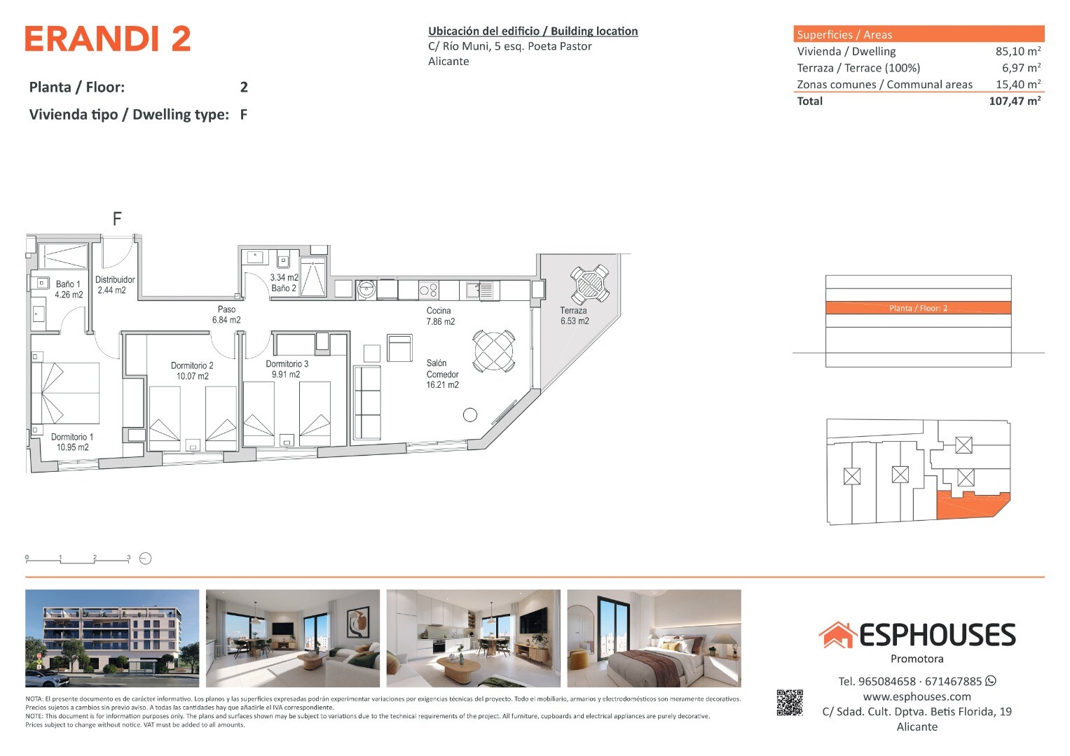 Located on the second floor of the Edificio ERANDI 2, this new-build flat offers the perfect balance between modern design, functionality and a prime location in the well-established La Florida neighbourhood — one of the most well-connected areas in Alicante. With 85.10 m² built, the property features three bedrooms with fitted wardrobes, two bathr...ooms, a spacious living-dining room with open-plan kitchen, and a 6.97 m² southwest-facing terrace, ideal for enjoying the sun throughout most of the day.