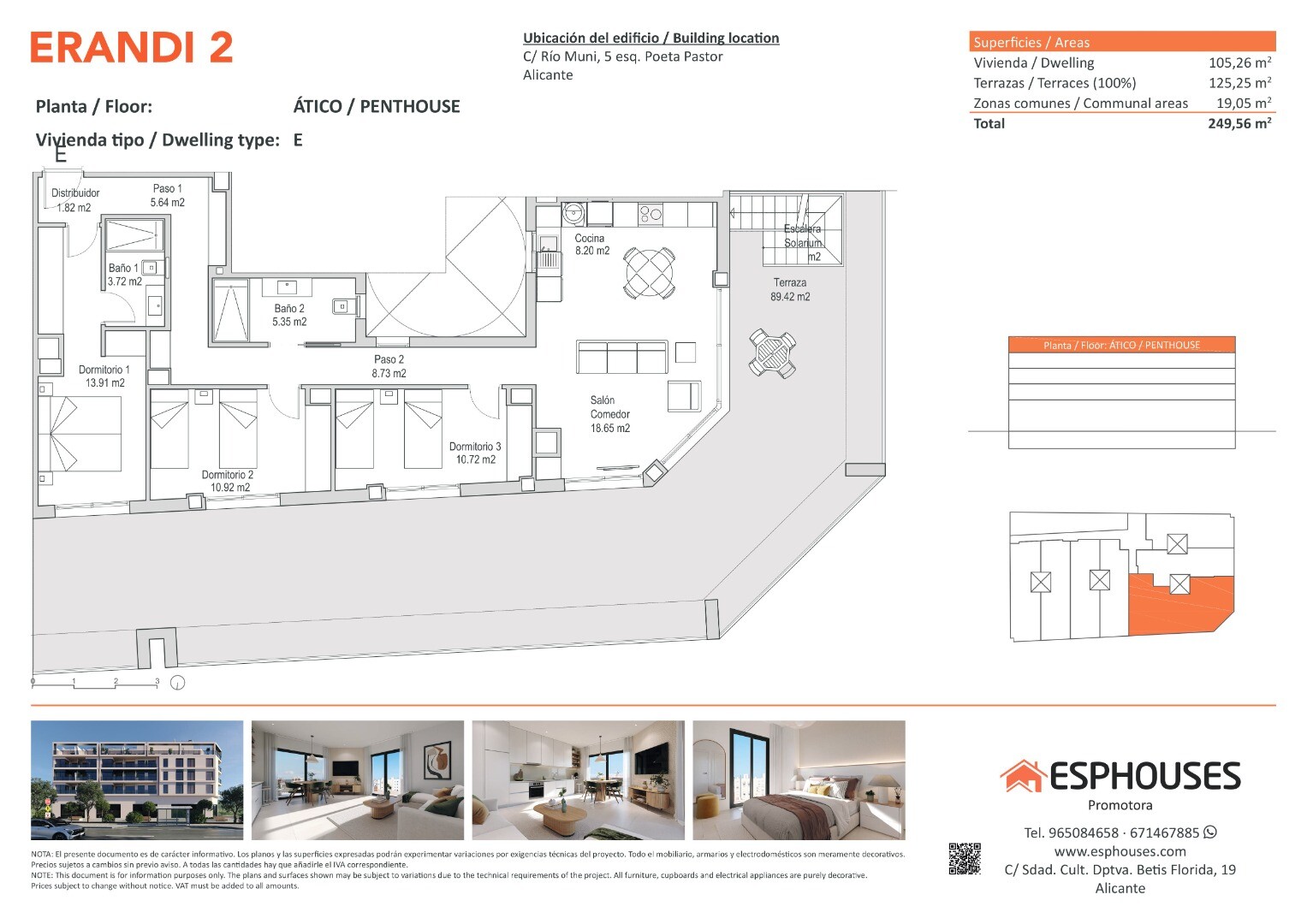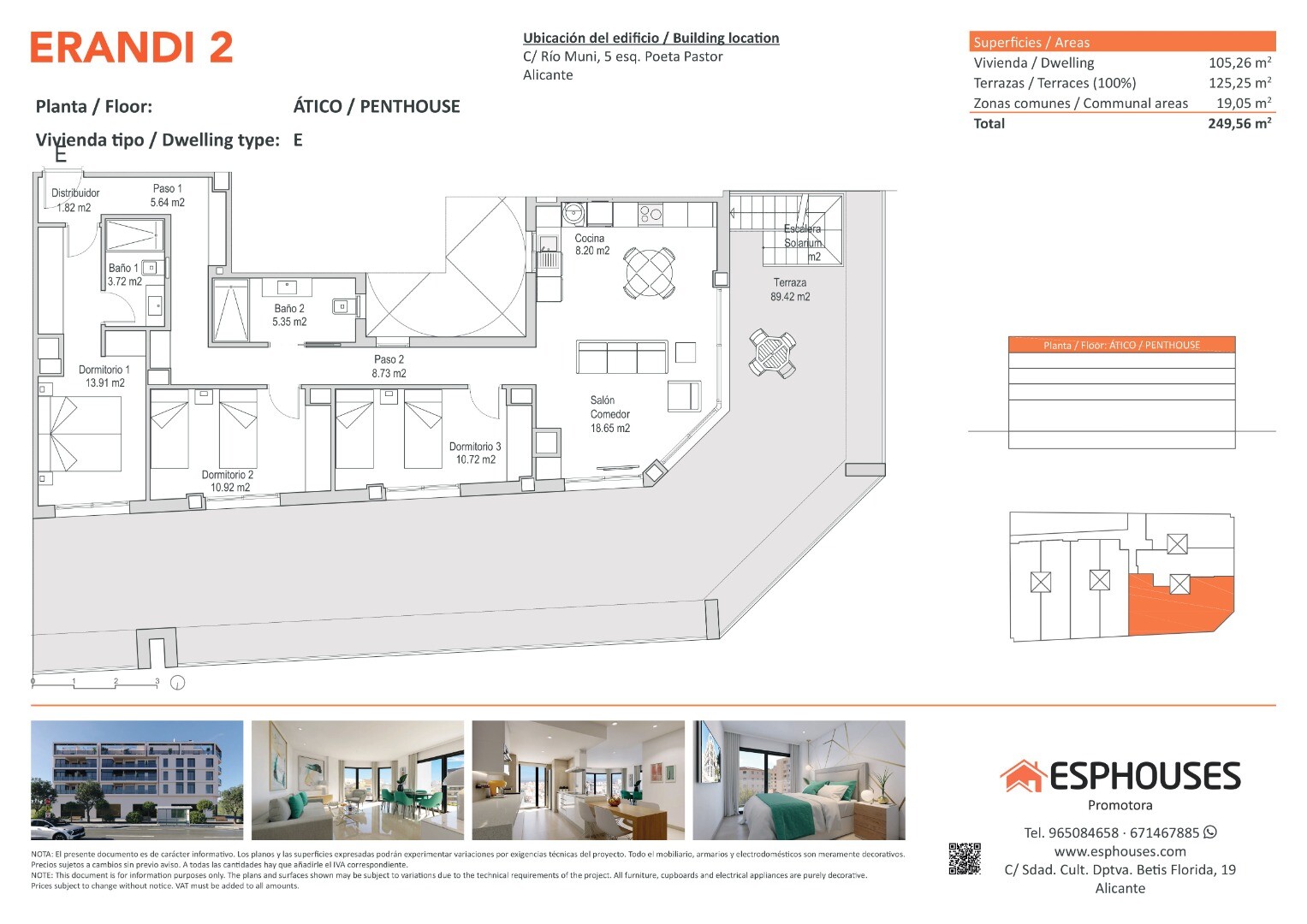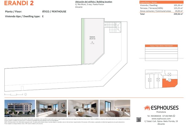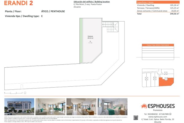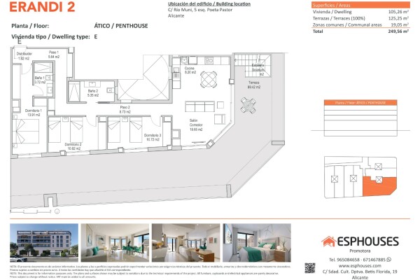 This spectacular new-build penthouse is located on the fourth floor of the ERANDI 2 building, in the emblematic neighbourhood of La Florida — one of the most established and well-connected areas of Alicante. With 105.26 m² of constructed area, the property features three spacious bedrooms with fitted wardrobes, two full bathrooms, and a bright livi...ng-dining room with an open-plan kitchen in a modern layout that maximises natural light and comfort.