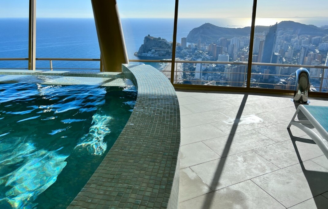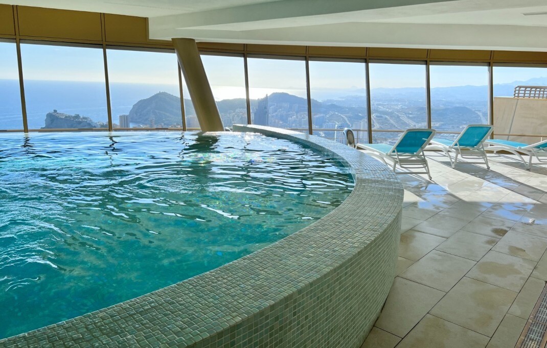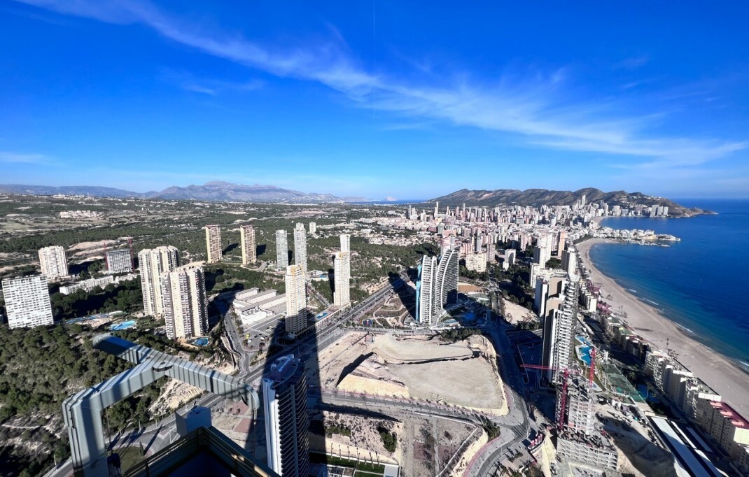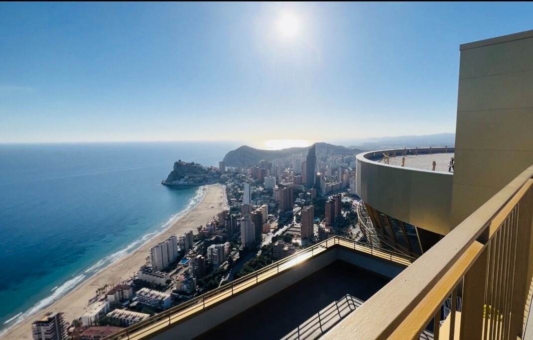This apartment is located in the iconic Intempo Sky resort & spa, a breathtaking skyscraper in Benidorm with its 47 floors, the tallest Art Deco design building in Europe! This gem offers a true 'hotel' experience as the property boasts a range of luxurious amenities including: sauna, massage and personal training options, yoga room, 2 swimming poo...ls (one indoor and one large outdoor) and breathtaking panoramic views on the top floor of the building with 4 Jacuzzis and a bar (in the summer months), as well as two fitness rooms, one of which is the highest Gym in Spain! With 9 lifts, including 3 express lifts per tower that take you from level -2 to level +46 in just 52 seconds. The apartment itself has a separate kitchen, a beautiful living room, a spacious terrace, including furniture, all in excellent condition, and the 2 bedrooms also have practical built-in wardrobes. The apartment also includes an underground storage room and its own allocated parking space. The south-east orientation provides plenty of natural light and the accommodation is just 300 meters from the beach, 25 minutes from Alicante airport and 2 minutes from all conceivable local amenities.