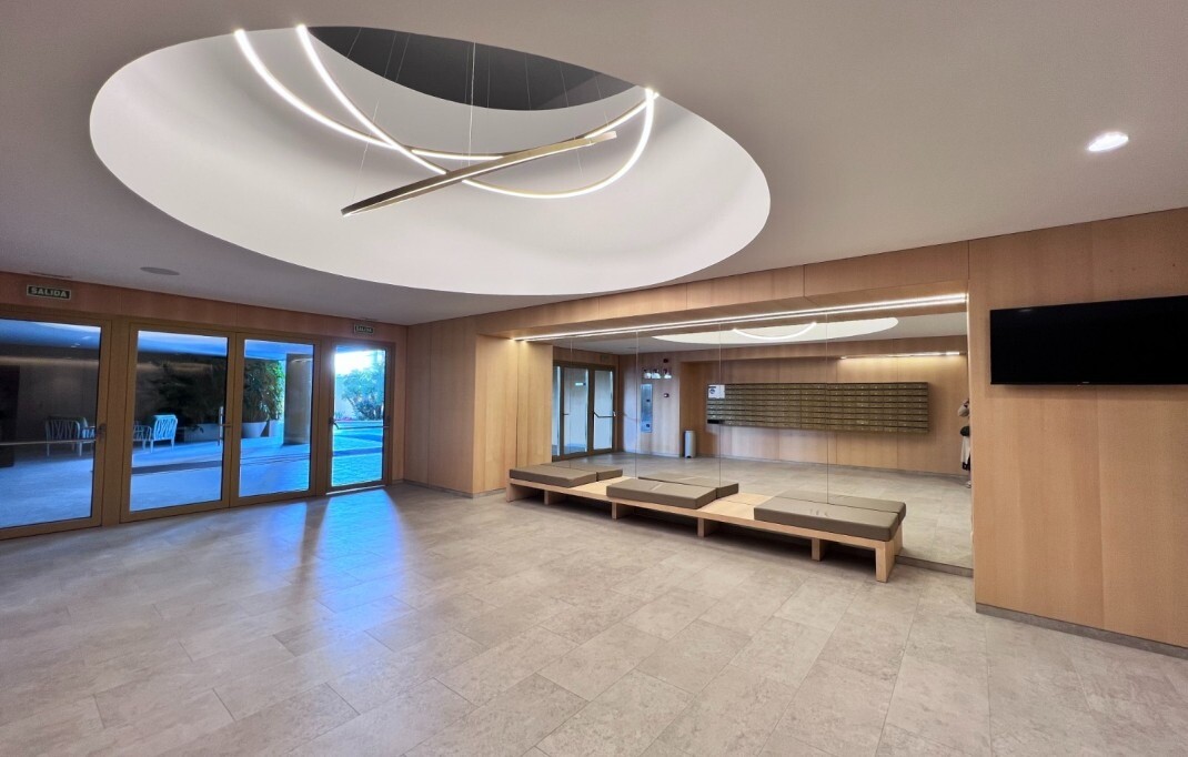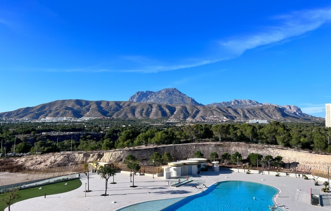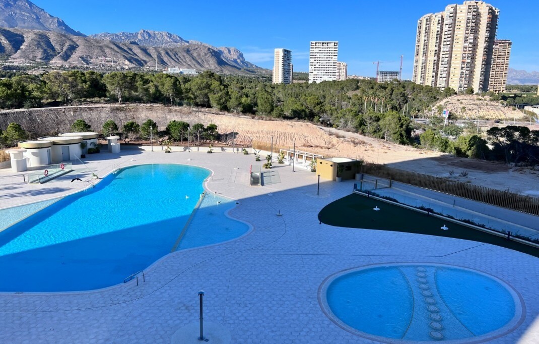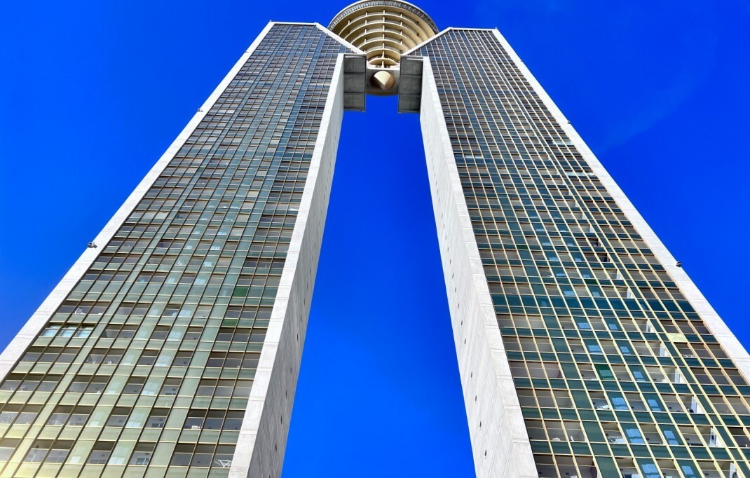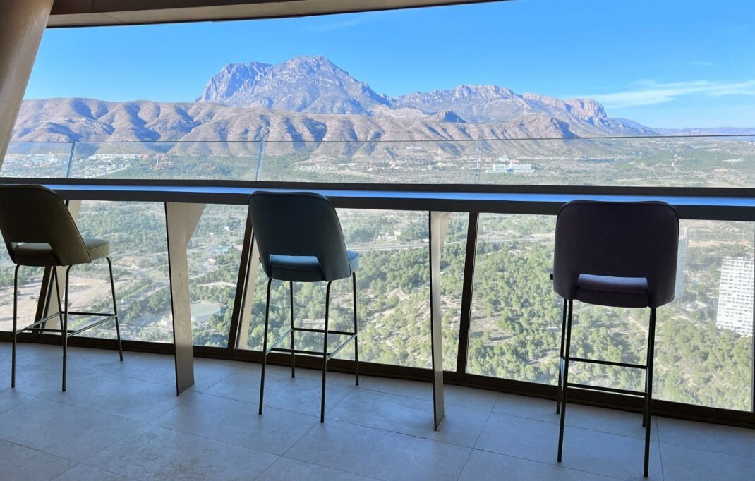 This apartment is located in the iconic Intempo Sky resort & spa, a breathtaking skyscraper in Benidorm with its 47 floors, the tallest Art Deco design building in Europe! This gem offers a true 'hotel' experience as the property boasts a range of luxurious amenities including: sauna, massage and personal training options, yoga room, 2 swimming poo...ls (one indoor and one large outdoor) and breathtaking panoramic views on the top floor of the building with 4 Jacuzzis and a bar (in the summer months), as well as two fitness rooms, one of which is the highest Gym in Spain! With 9 lifts, including 3 express lifts per tower that take you from level -2 to level +46 in just 52 seconds. The apartment itself has a separate kitchen, a beautiful living room, a spacious terrace, including furniture, all in excellent condition, and the 2 bedrooms also have practical built-in wardrobes. The apartment also includes an underground storage room and its own allocated parking space. The south-east orientation provides plenty of natural light and the accommodation is just 300 meters from the beach, 25 minutes from Alicante airport and 2 minutes from all conceivable local amenities.