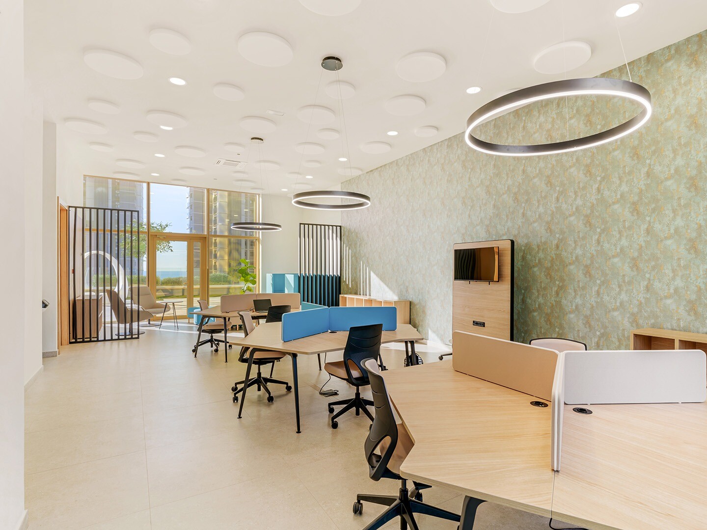 The complex also has cafés and restaurants to satisfy your gastronomic cravings. If you need a place to work or study, you will have access to a coworking space. For the little ones, there is a children's area where they can play and have fun.