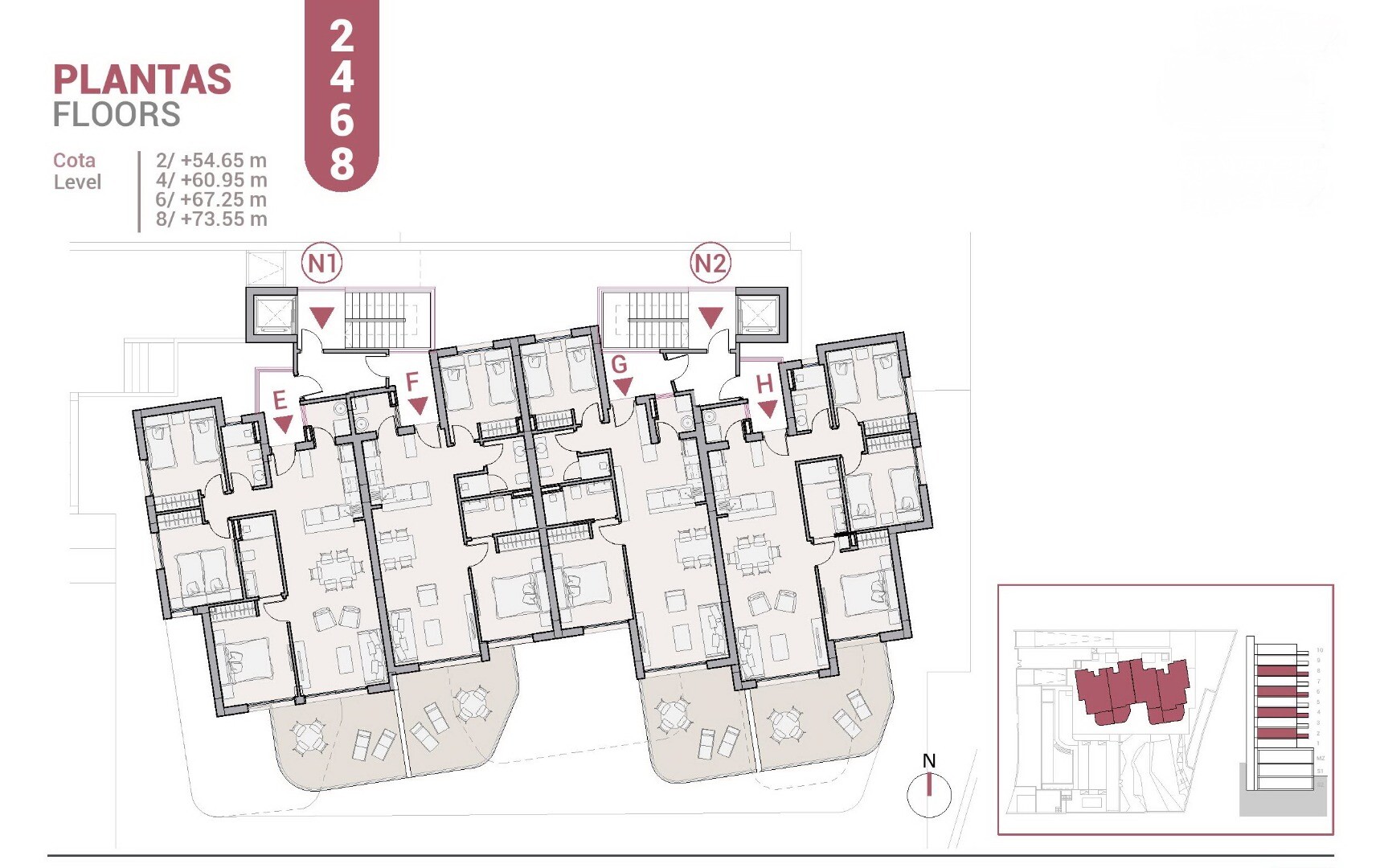 Wonderful 2 and 3 bedroomed apartments in La Manzanera area of Calpe. A short walk from the centre of town and the beaches and coves of Calpe. Top quality materials and very complete urbanisation with swimming pool, gym, sauna, jacuzzi, mini-golf, gourmet area with BBQ, cinema room, co-working area and children's play area.
