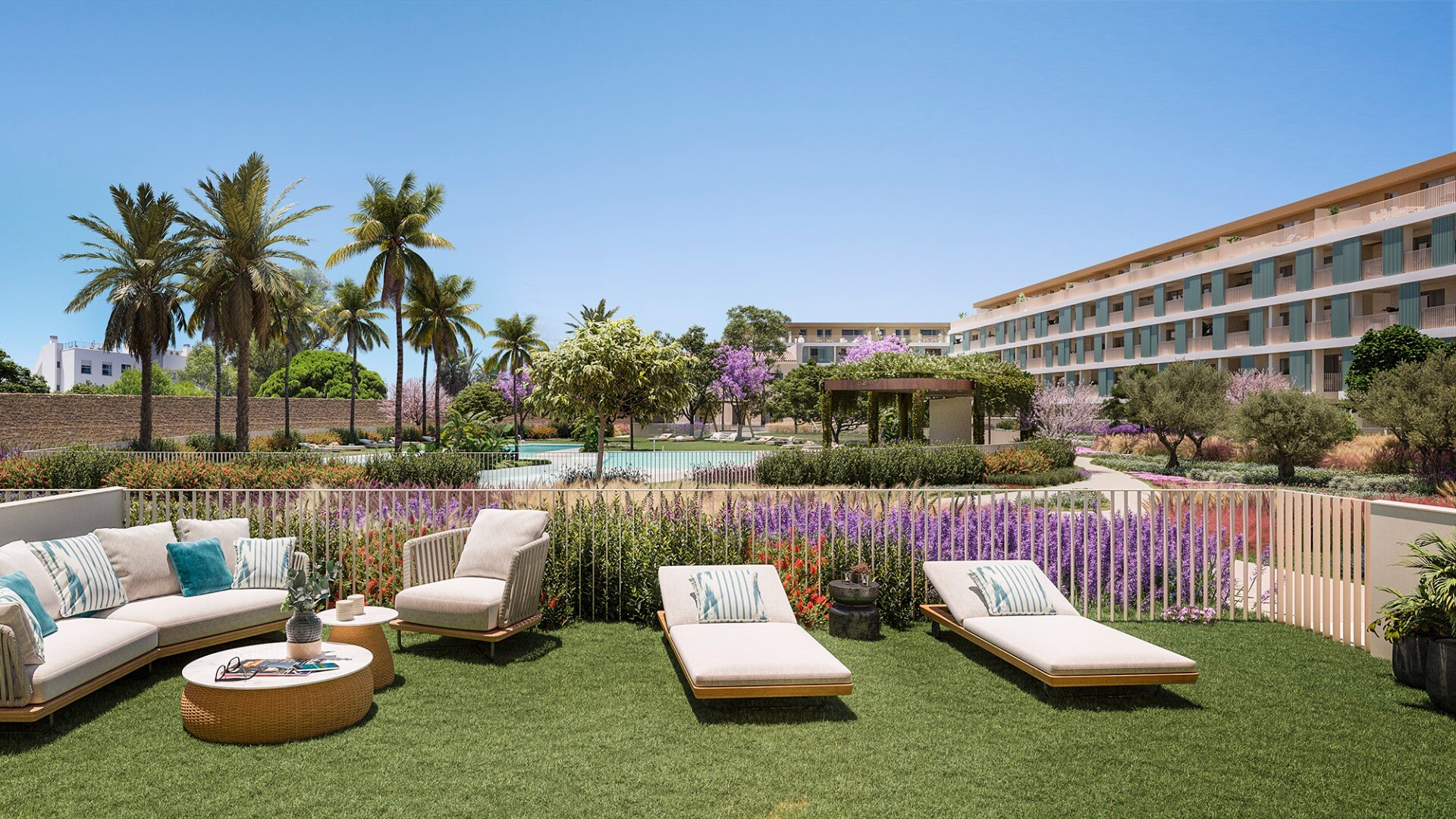 The development will offer a full range of amenities for residents to enjoy, including a stunning salt chlorination swimming pool, a swimming lane, a solarium for sunbathing and a lush garden surrounding these areas, creating a tranquil and relaxing environment.