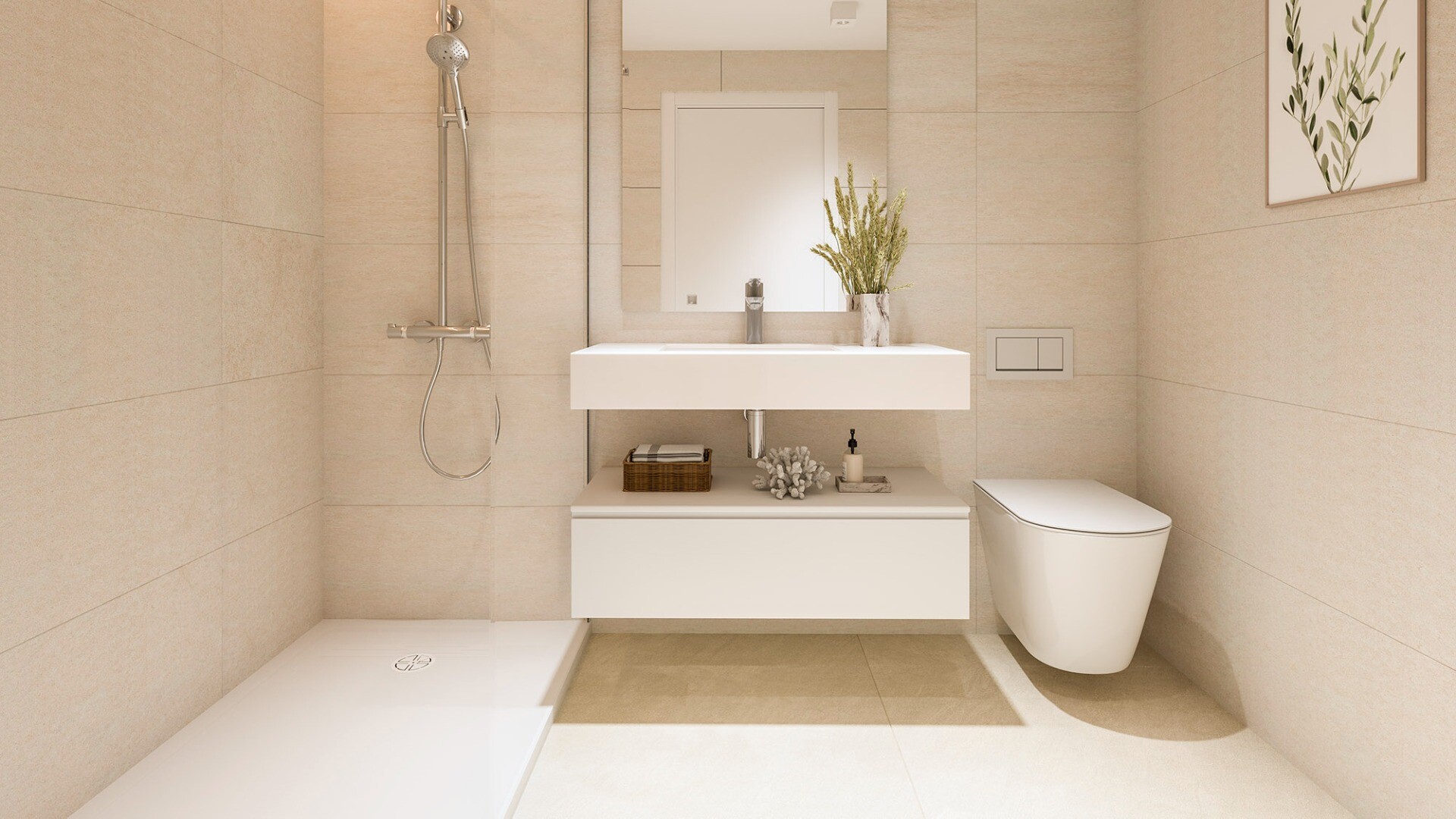 With an intelligent and ...carefully designed layout, this flat will feature two spacious bedrooms and two full bathrooms, guaranteeing the space and privacy you need. The bright living-dining room, with an integrated kitchen of modern design, will create a cosy and functional environment for family gatherings or relaxing moments.