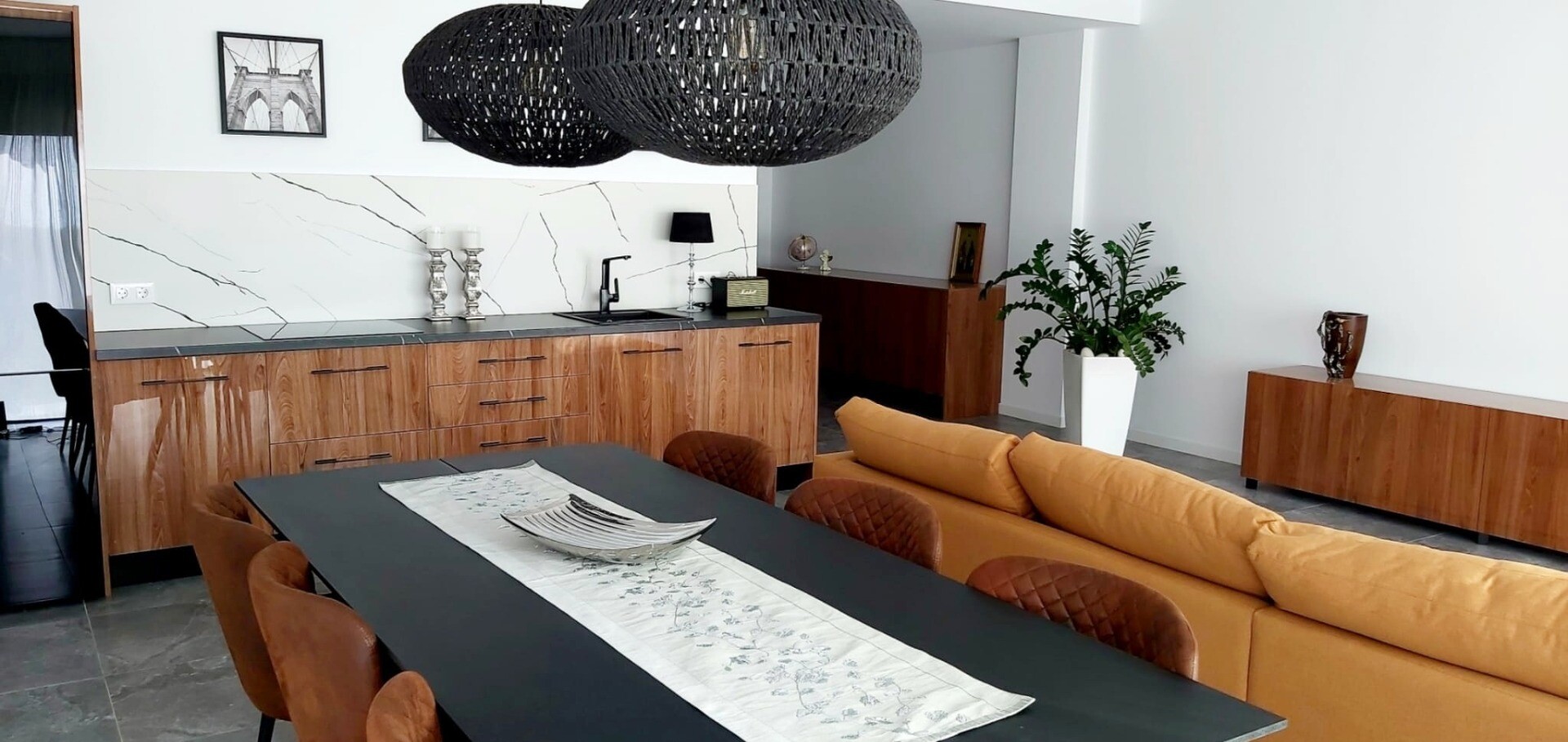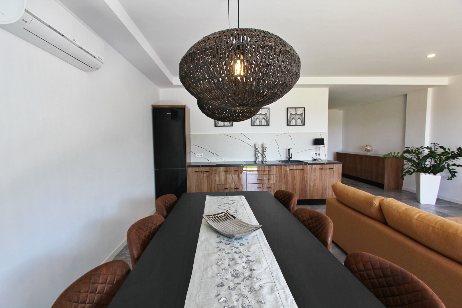 This unique home features 4 spacious bedrooms (one currently used as a home office), 3 bathrooms, ...with 2 being en-suites. The entry-level has an inviting lounge with an open-plan kitchen that leads to a large terrace, while the garden level boasts another large lounge with an open-plan kitchen and direct access to the picturesque private garden. The house is thoughtfully designed and comes fully furnished with top-of-the-range furniture and electrical appliances.