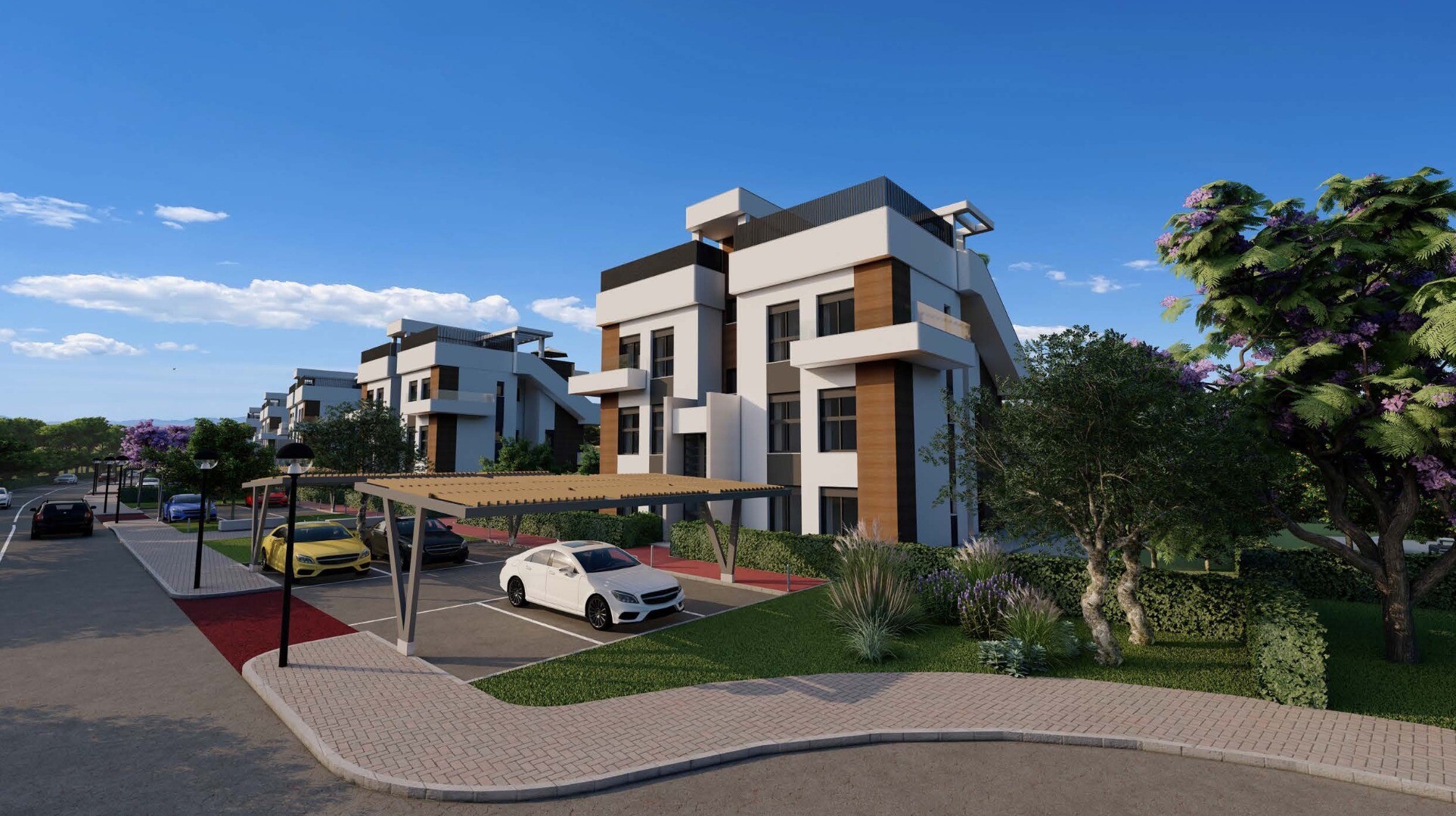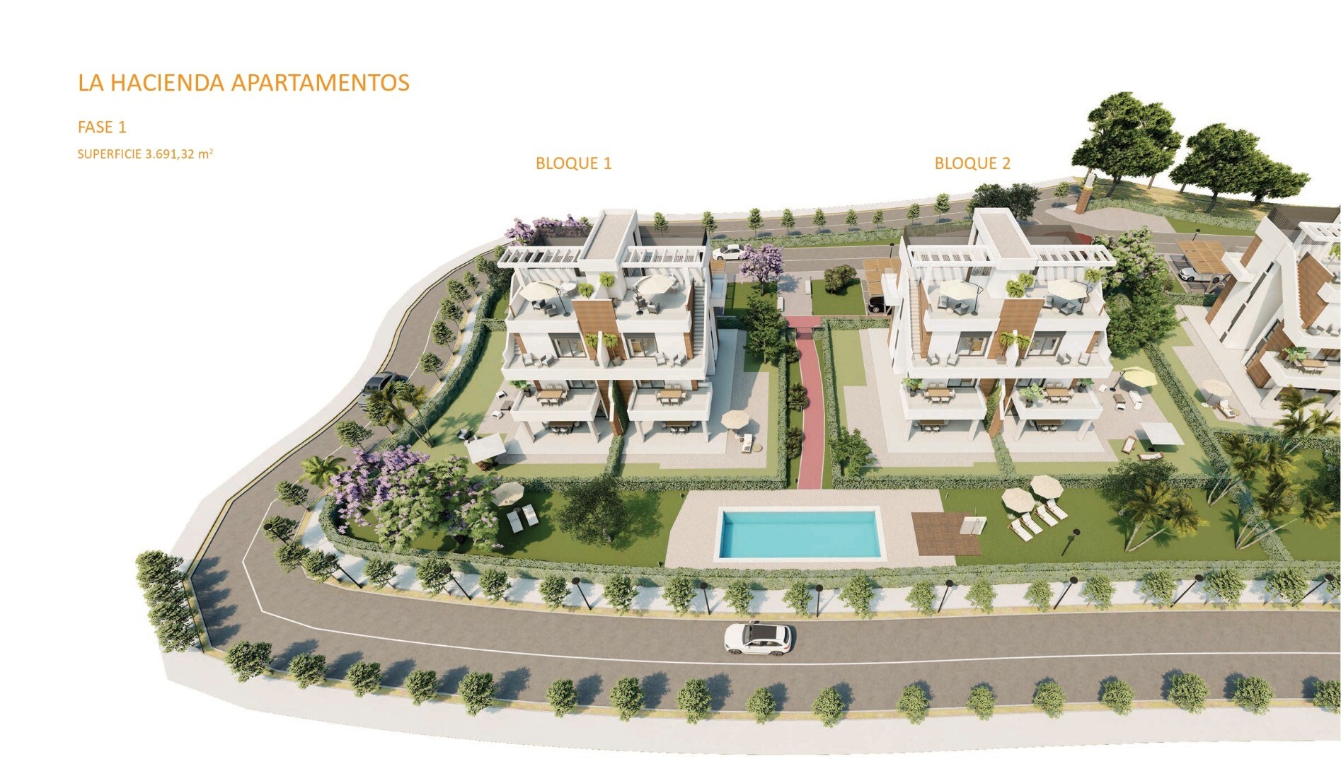 The apartments are located in a block of six apartments with 2 bedrooms and 2 bathrooms in Hacienda del Alamo with views of the golf course. 2 ground floor, 2 first floor and 2 penthouse with private solarium.