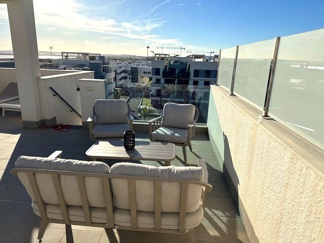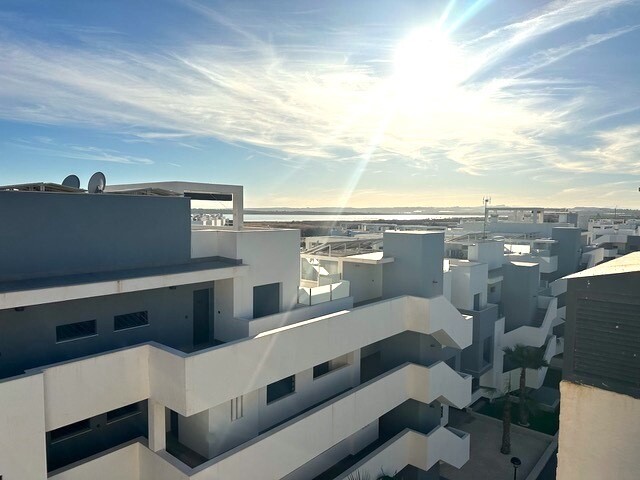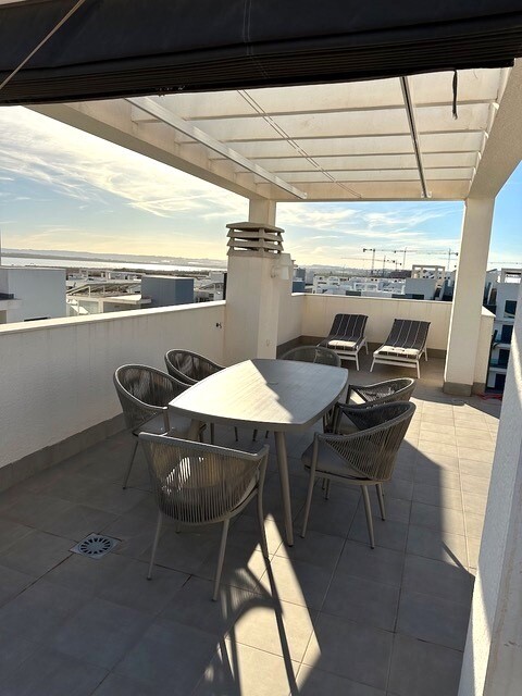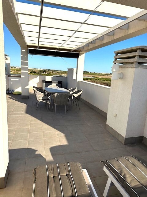 Solarium of 77m2. This beautiful corner penthouse is a true gem in the sought-after El Raso urbanization, just a few minutes from Guardamar del Segura with its golden sandy beaches. With a privileged location and stunning views, this property offers an exceptional lifestyle. Enjoy beautiful views over lemon groves and salt lagoons. Peace and natura...