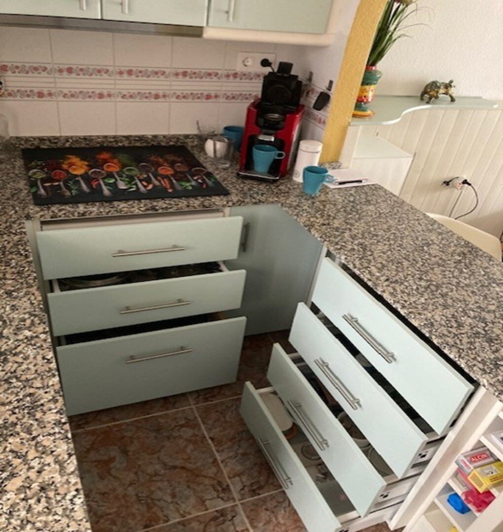 Ground-floor apartment with two spacious terraces, just 1 km from the beach. The complex has two communal swimming pools. The apartment has recently been equipped with new kitchen appliances and a completely renovated bathroom. The rooms have also been completely repainted.