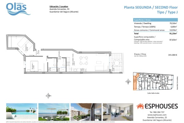 Located on the prestigious Avenida de Cervantes, in one of the most sought after areas of Guardamar del Segura, the Edificio Olas will be located. This perfect choice offers ideal proximity to the beach and a wide range of services. Standing out from the crowd, this exclusive building will feature a swimming pool and rooftop solarium, providing a s...