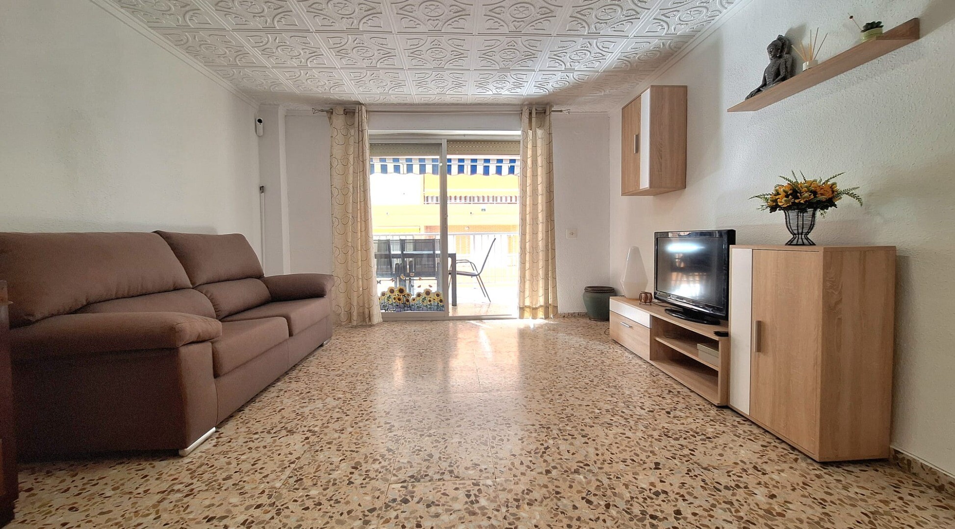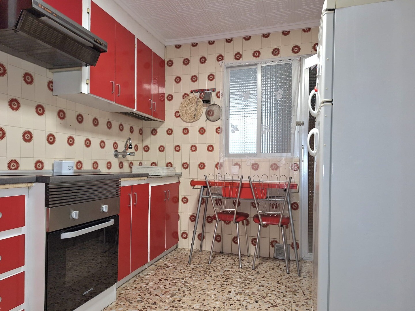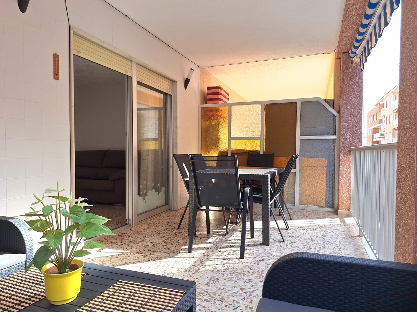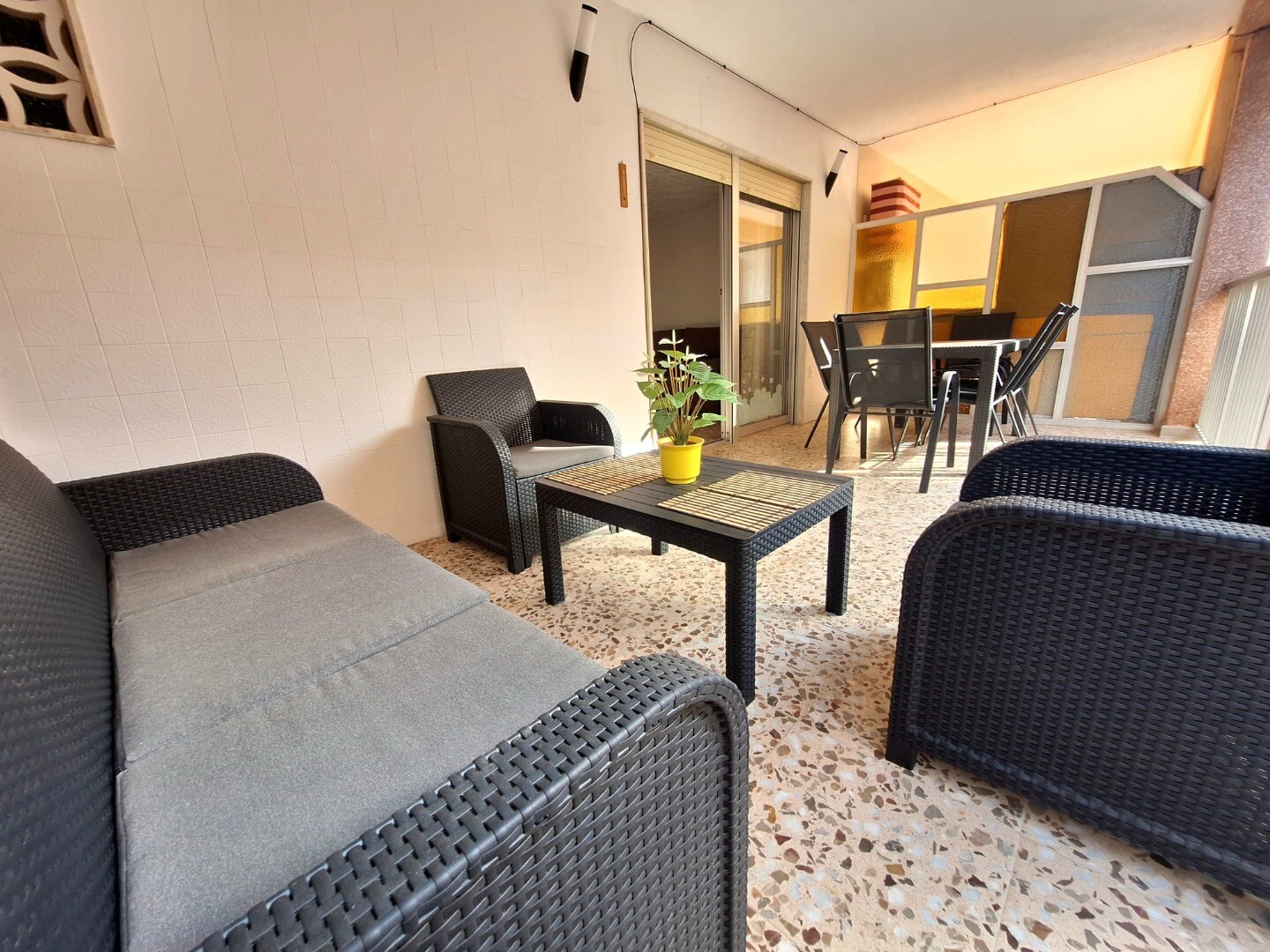 The property is distributed in 3 bedrooms with fitted wardrobes, 2 bathrooms, separate kitchen, large living-dining room and a 15m2 terrace with side sea views. It has a gallery. Furnished. Close to all services and amenities, pharmacies, parks, shops, supermarkets, restaurants, and town hall. Additionally, in the surroundings there are 11km of bea...