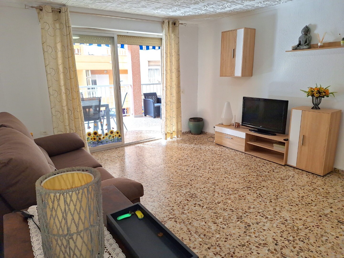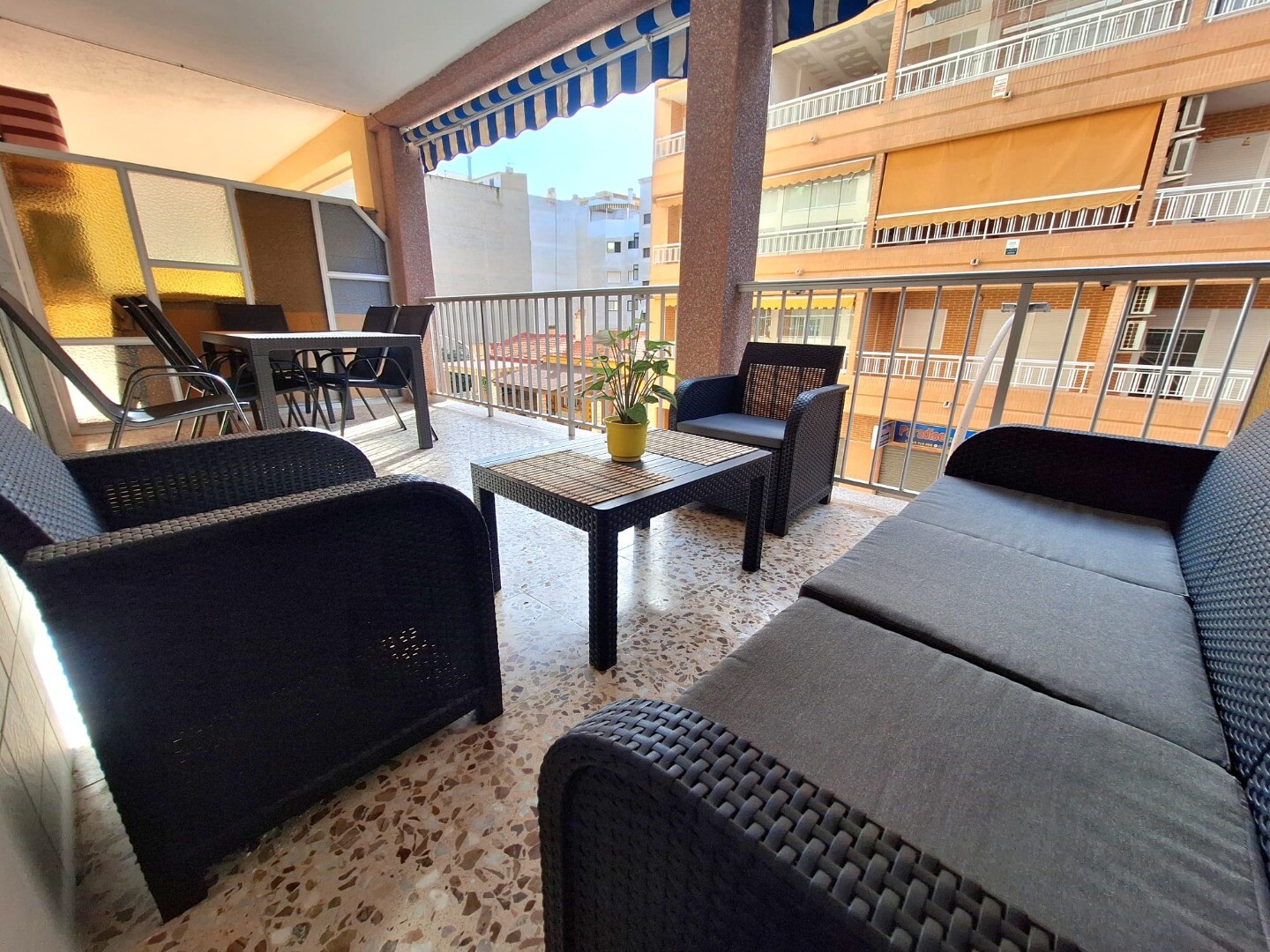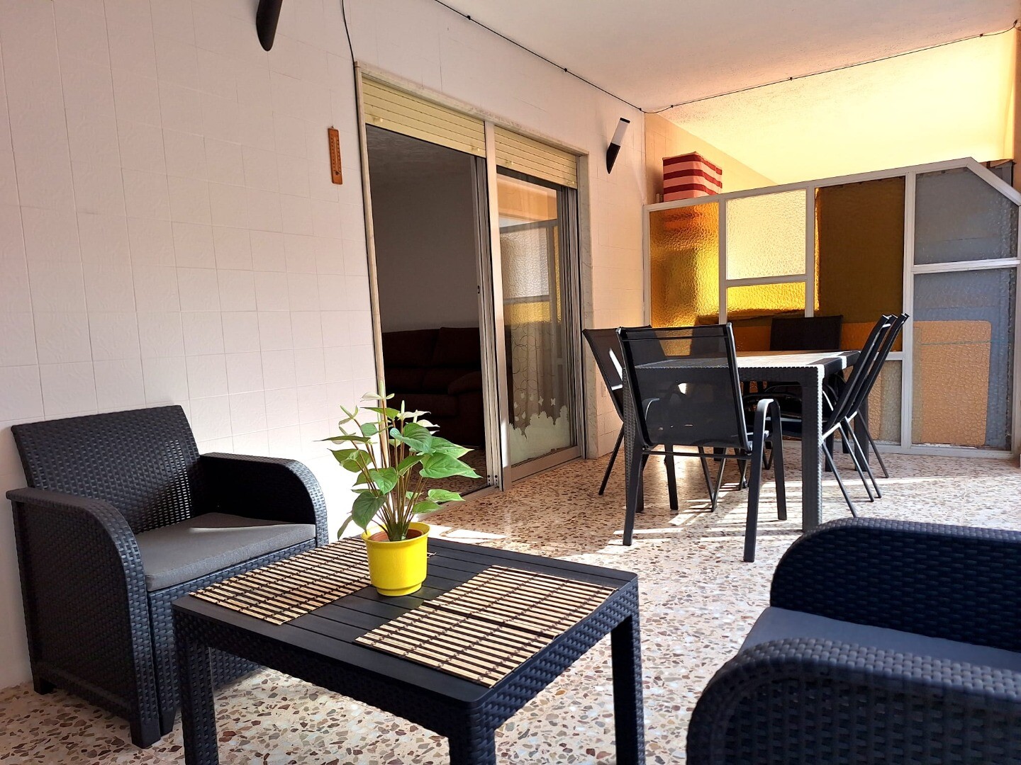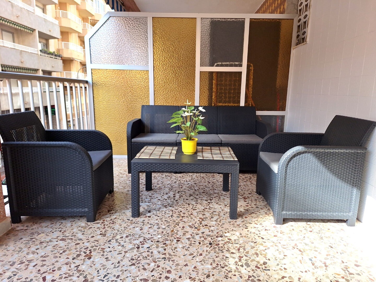 The property is distributed in 3 bedrooms with fitted wardrobes, 2 bathrooms, separate kitchen, large living-dining room and a 15m2 terrace with side sea views. It has a gallery. Furnished. Close to all services and amenities, pharmacies, parks, shops, supermarkets, restaurants, and town hall. Additionally, in the surroundings there are 11km of bea...