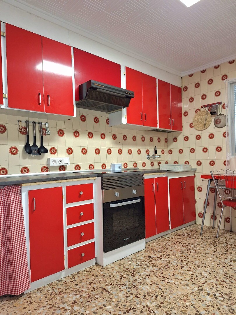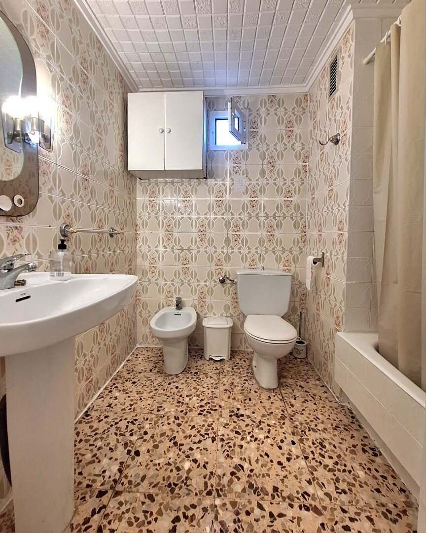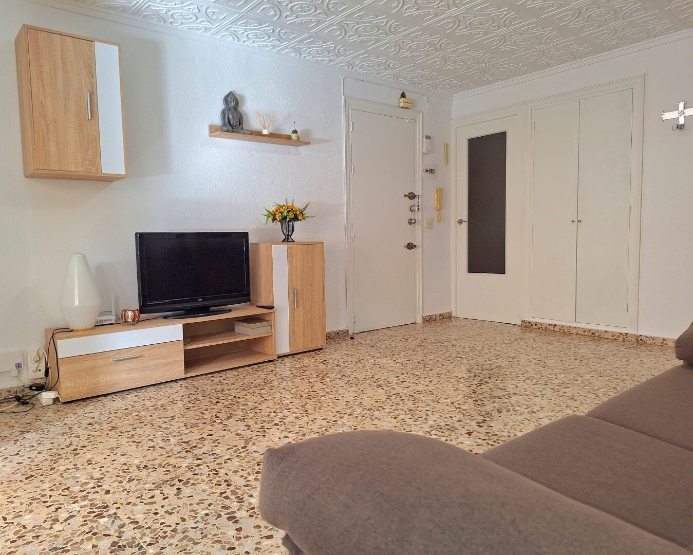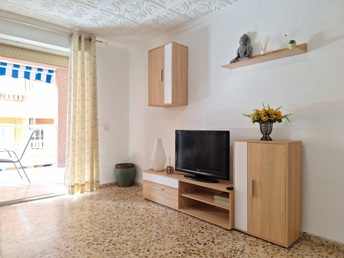 The property is distributed in 3 bedrooms with fitted wardrobes, 2 bathrooms, separate kitchen, large living-dining room and a 15m2 terrace with side sea views. It has a gallery. Furnished. Close to all services and amenities, pharmacies, parks, shops, supermarkets, restaurants, and town hall. Additionally, in the surroundings there are 11km of bea...
