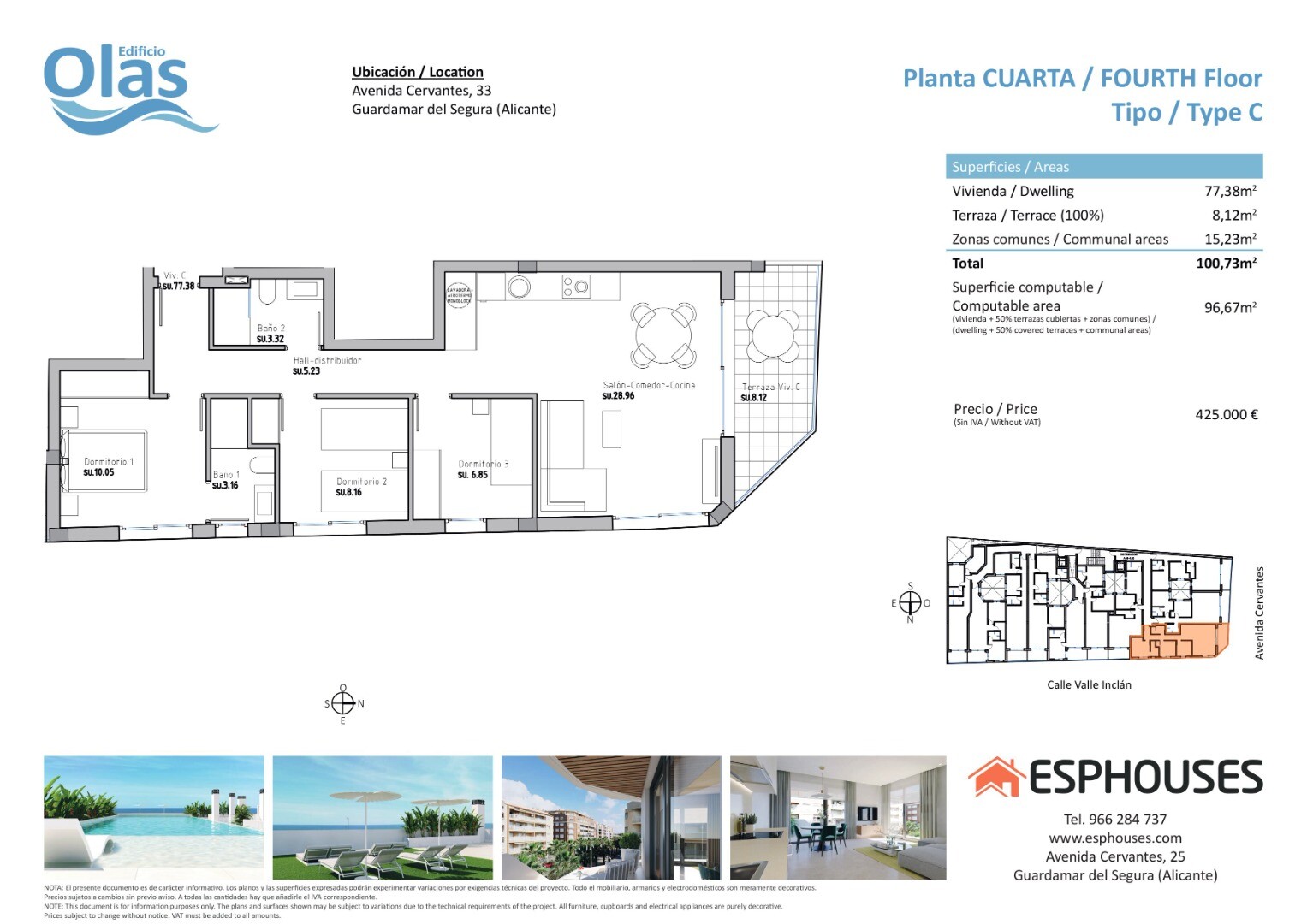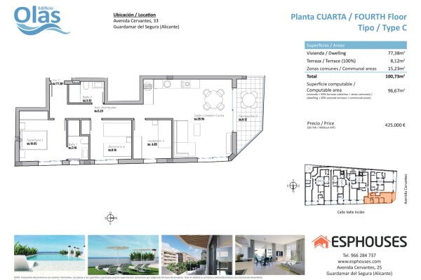 Located in one of the most sought after areas of Guardamar del Segura, on the prestigious Avenida de Cervantes, the Edificio Olas will be a perfect option due to its proximity to the beach and a wide range of services. This magnificent building will offer its residents a unique experience, with the convenience of a swimming pool and a rooftop solar...