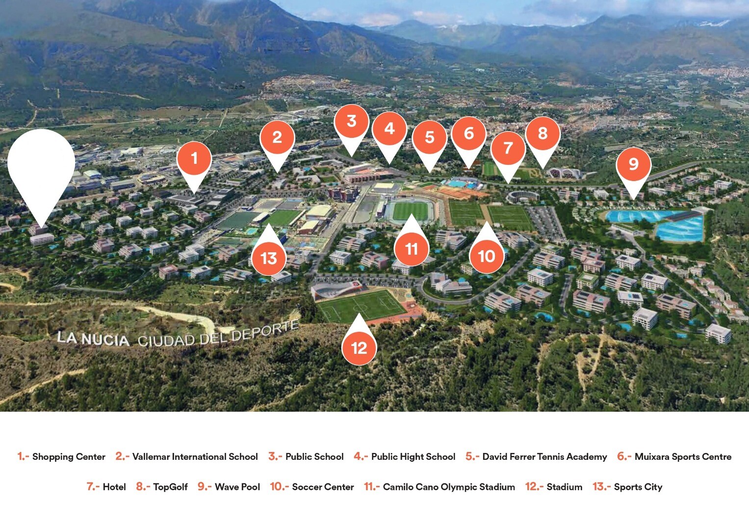 In this residential you will discover a unique environment where you can enjoy the surroundings and the exceptional climate of this sought-after region of Spain every day. The development, located in the prestigious Ciudad del Deporte, guarantees the convenience of having all the essential services at your fingertips: a brand new shopping centre, p...harmacies, supermarkets and a wide range of restaurants, all just a stone's throw from your home. In this residential you will find 64 exclusive homes, which stand out for their spacious terraces, perfect for enjoying the wonderful climate of the Costa Blanca all year round. Choose from apartments and penthouses with a living area of up to 104 m², with 2 or 3 bedrooms and 2 bathrooms, designed to suit different lifestyles. Prices range from €273,000 to €362,000. The layout is designed for a fluid atmosphere, with an open plan living and dining area and a fully fitted kitchen with a cooking island with extractor fan, induction hob, oven and microwave. Life in this residence extends beyond the walls of your home – this is a lifestyle designed to exceed expectations and provide maximum comfort. Take a refreshing dip in the pool, while the kids play in the dedicated children’s park or cool off in their own pool. Stay active without leaving the house by using the fully equipped gym. For moments of conviviality and connection, the social club is the perfect place to gather with friends and neighbours, enjoy good conversations and create lasting memories in a modern and welcoming environment. Each home comes with a spacious private parking space and a practical storage room, so you don’t have to worry about keeping everything organised and within reach. The setting offers the perfect balance between the tranquillity of nature and the convenience of city life. Here you can enjoy a peaceful atmosphere surrounded by pine trees and the Mediterranean sun, while still being just minutes away from beaches, essential amenities and a vibrant urban lifestyle. Right on your doorstep, a brand new shopping centre will become an essential part of your daily routine, with a wide range of shops and services, including an Aldi supermarket and well-known retailers such as JYSK, TEDi, Sprinter, Pepco, Popeyes and Burger King, to name a few. Furthermore, this is your dream neighbourhood if you are a sports enthusiast. This residence is the first residential complex in La Nucía’s City of Sport, an international sports and wellness centre with over 400,000 m² of world-class facilities for all kinds of sports. Highlights include the David Ferrer Tennis Academy, the Camilo Cano Olympic Stadium, Spain’s largest surf park and a football centre. In addition, a high-performance golf training centre by the renowned TopGolf is currently under development. The La Nucía area offers everything you need for daily life, including supermarkets, pharmacies, restaurants, shopping centres and medical facilities, all within easy reach. The complex has excellent public transport connections. Just a 15-minute drive away is Benidorm, with its iconic beaches and vibrant nightlife. Looking to explore further afield? Alicante is just 30 minutes away and the picturesque town of Altea is just 12 minutes away. For further afield, Alicante-Elche Miguel Hernández Airport is just 45 minutes away, making both domestic and international travel effortless.