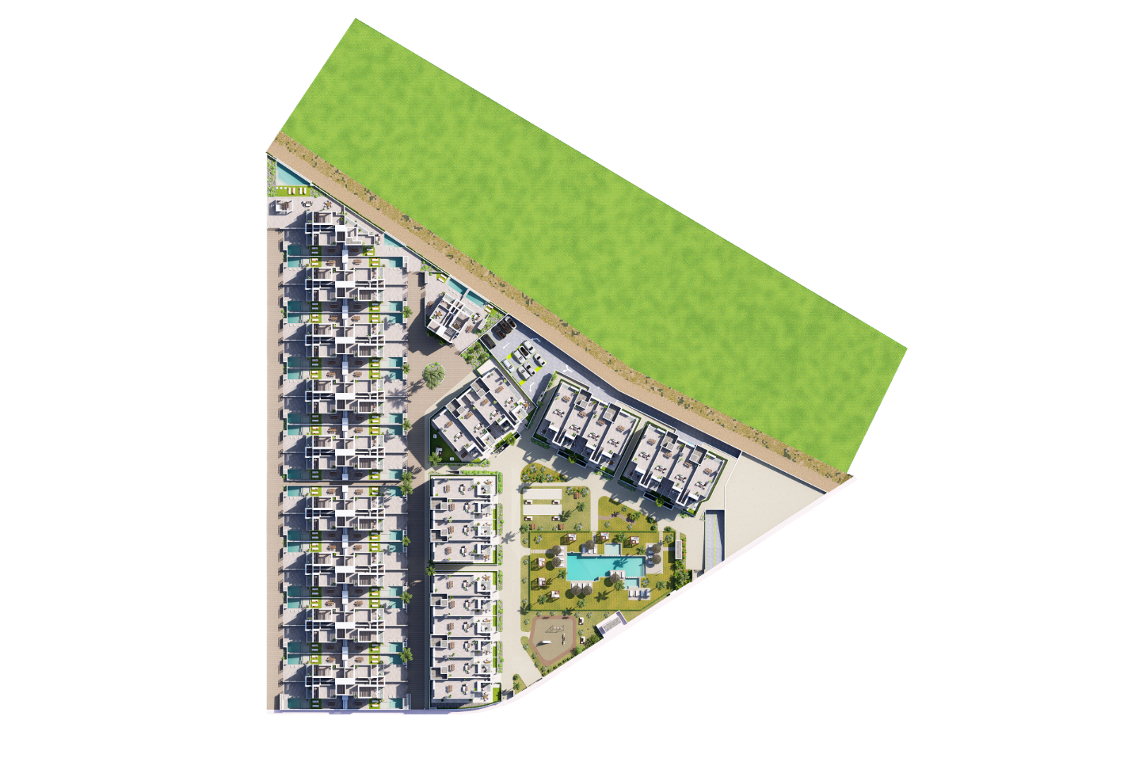 This exclusive new-build penthouse is located on the second floor and occupies a corner position within a modern residential complex in Los Alcázares, next to the prestigious Serena Golf. Its south-east orientation provides abundant natural light throughout the day and pleasant open views.