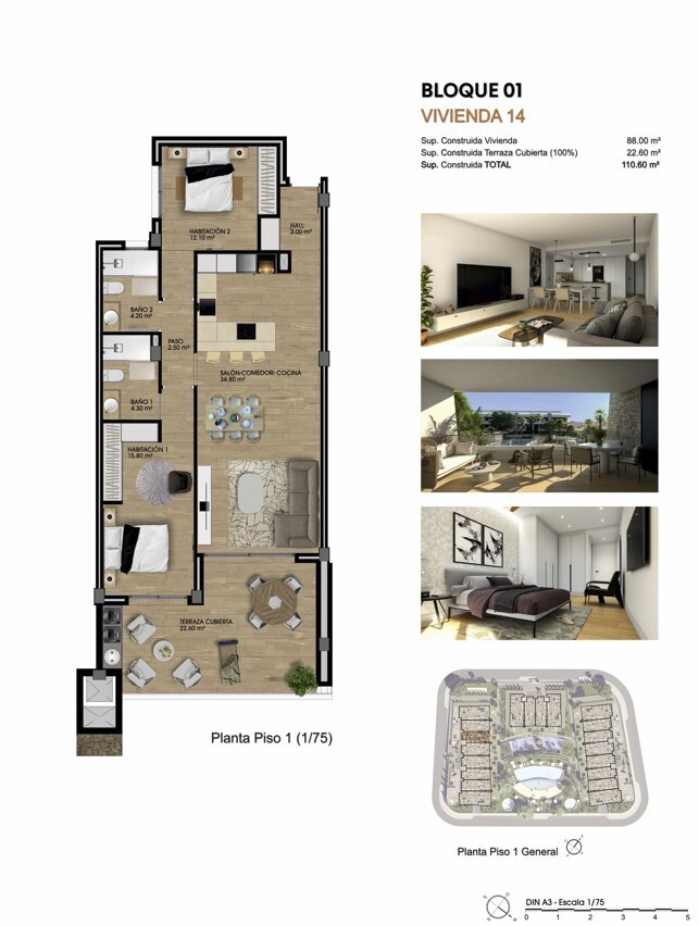 Exclusive apartments in Font del Llop Golf Resort with two or three bedrooms, each with two bathrooms, underground storage, and a parking space. An additional 35 parking spaces are available for €15,000. Upon purchase with the apartment it is subject to 10% VAT, and afterward, it is subject to 21% VAT. The apartments come with hot/cold climate cont...