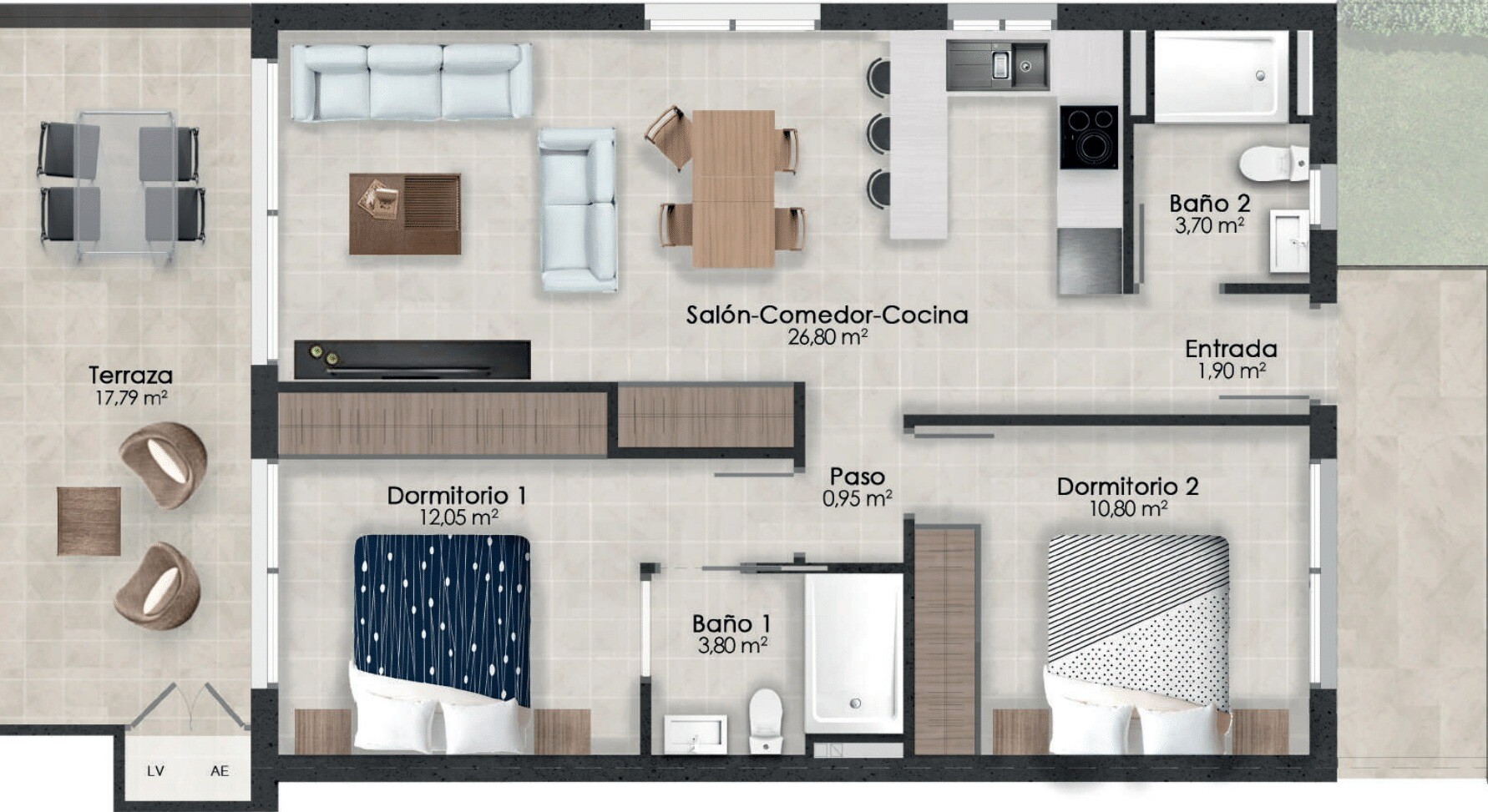 Newly built apartments overlooking the golf course. Optionally, the apartment can be completed with: furniture and decoration package and kitchen appliances from €10,950, air conditioning machine from €2,900 and underfloor heating in the bathrooms from €550/bathroom. The residence has a good connection to the Murcia-Corvera airport in just 30 minut...es.