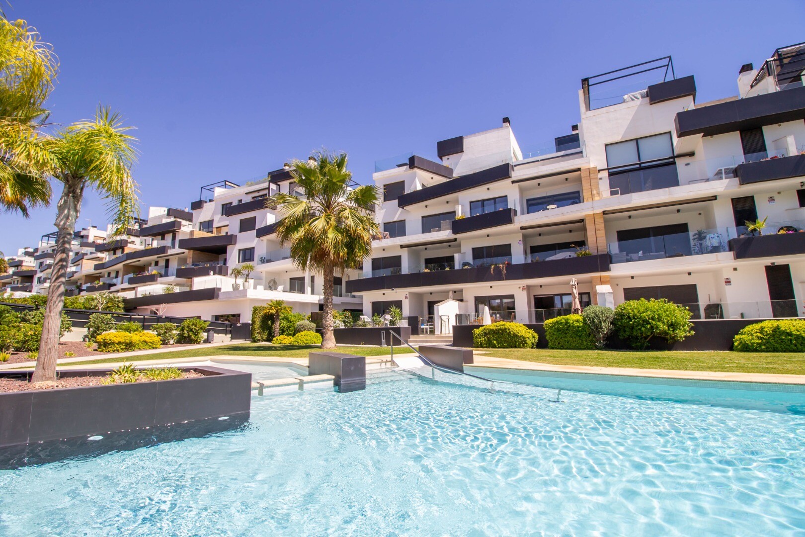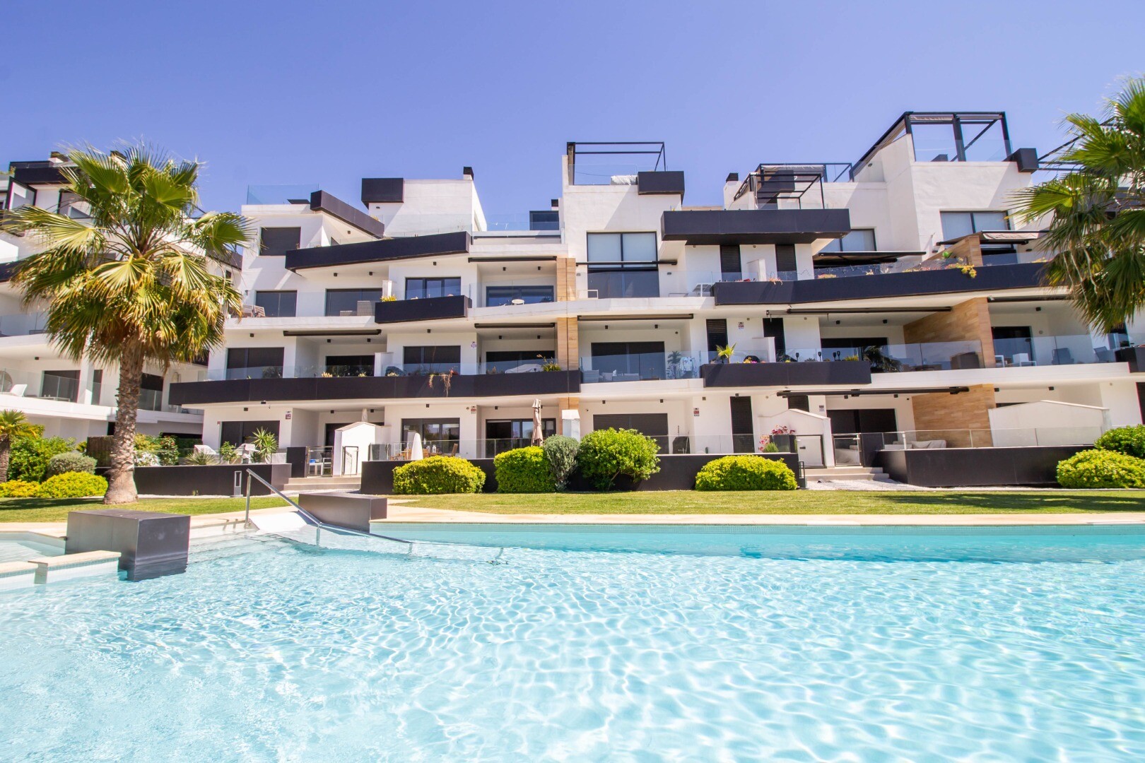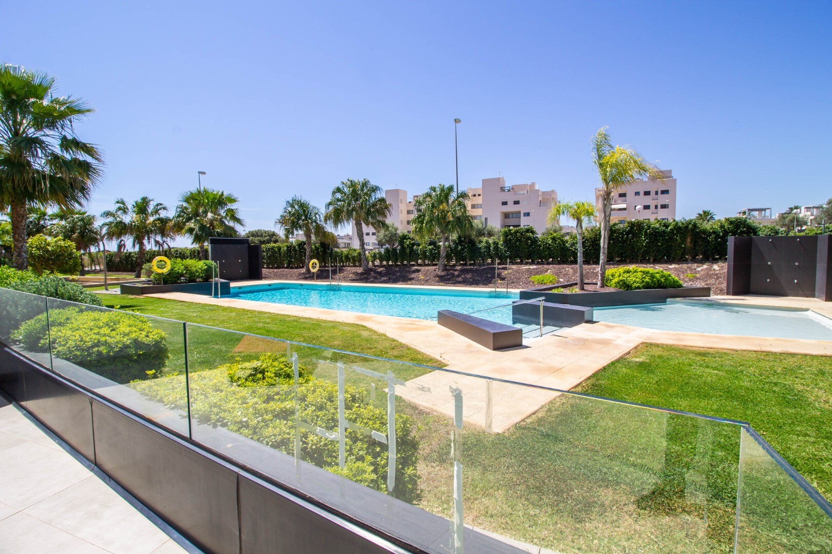 Luxury apartment in Los Dolses- Orihuela Costa with a large terrace that has direct access to the communal garden with 2 swimming pools, a communal area with spa and gym.