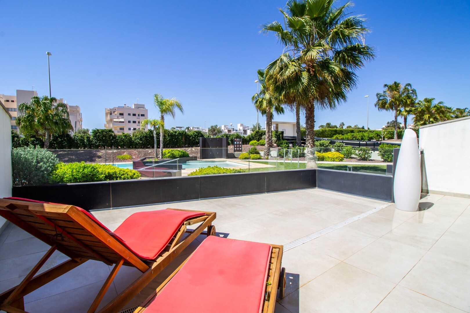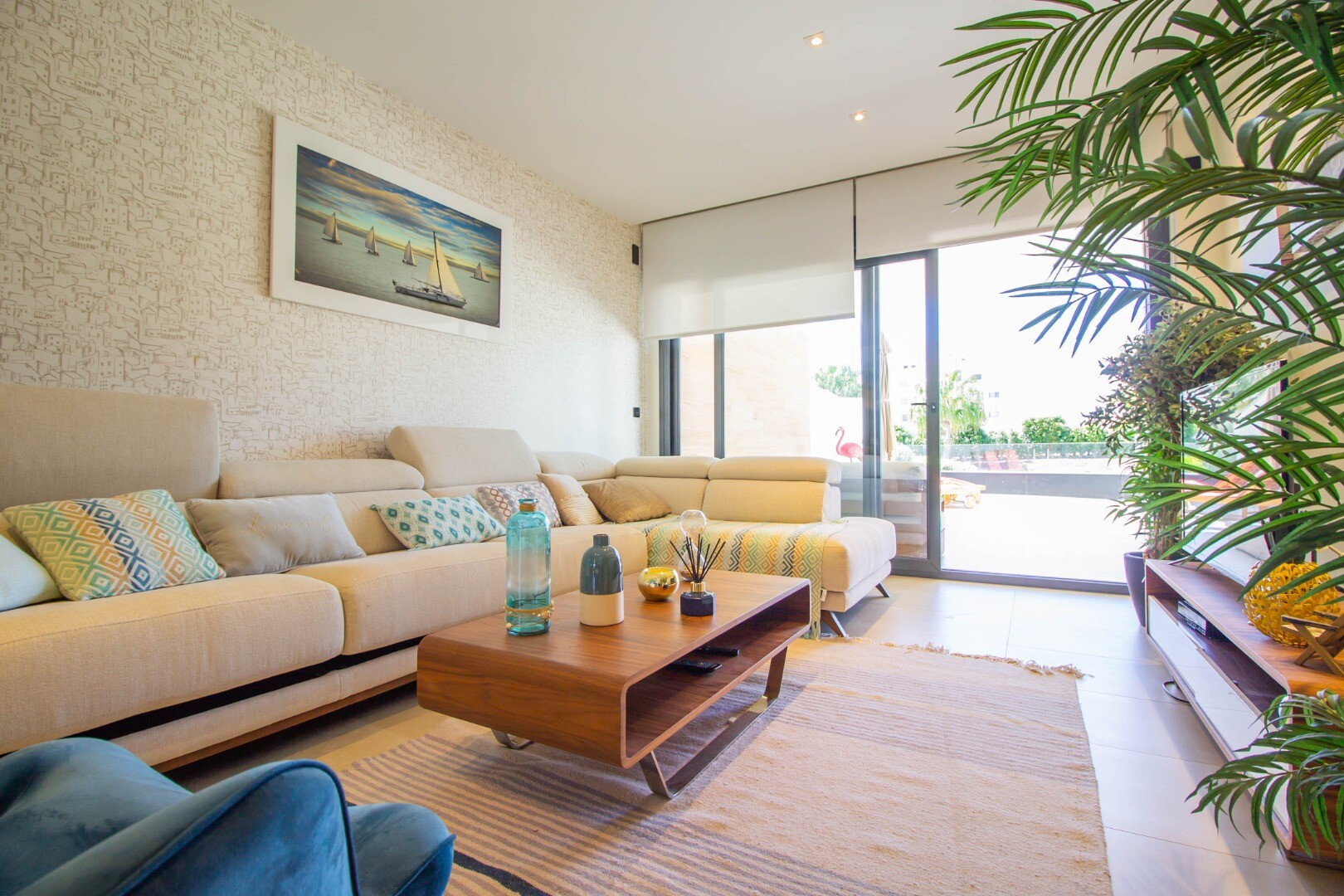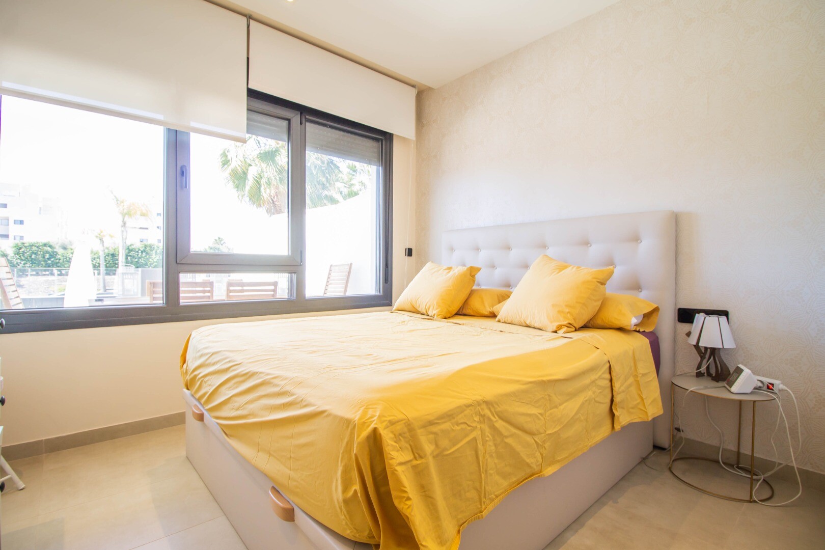 Luxury apartment in Los Dolses- Orihuela Costa with a large terrace that has direct access to the communal garden with 2 swimming pools, a communal area with spa and gym.