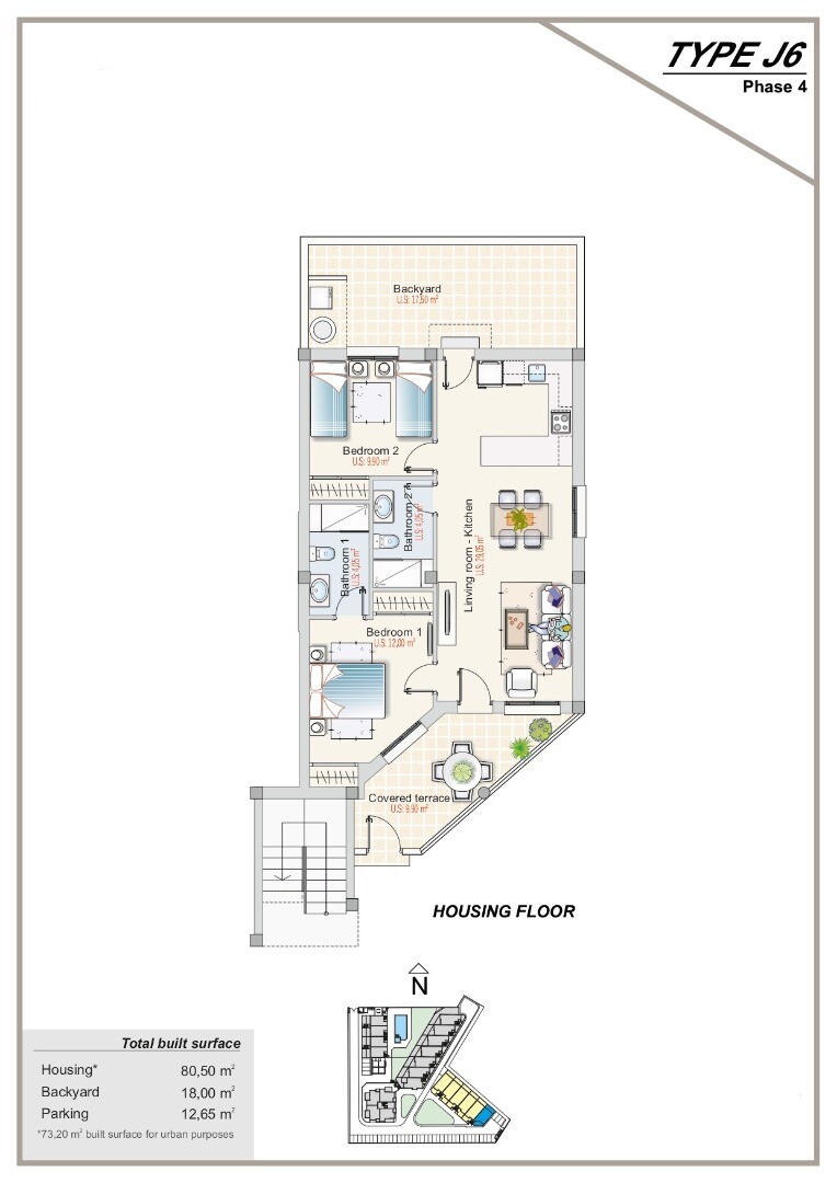 The development will consist of 50 homes of different types. The homes will be built in four phases. Phase I will consist of a group of 8 apartments, 4 of which are on the ground floor with a semi-basement, which are in principle intended for garages, but in which a separation can be made and have a living area of ​​approximately 24 m2, and 4 apart...