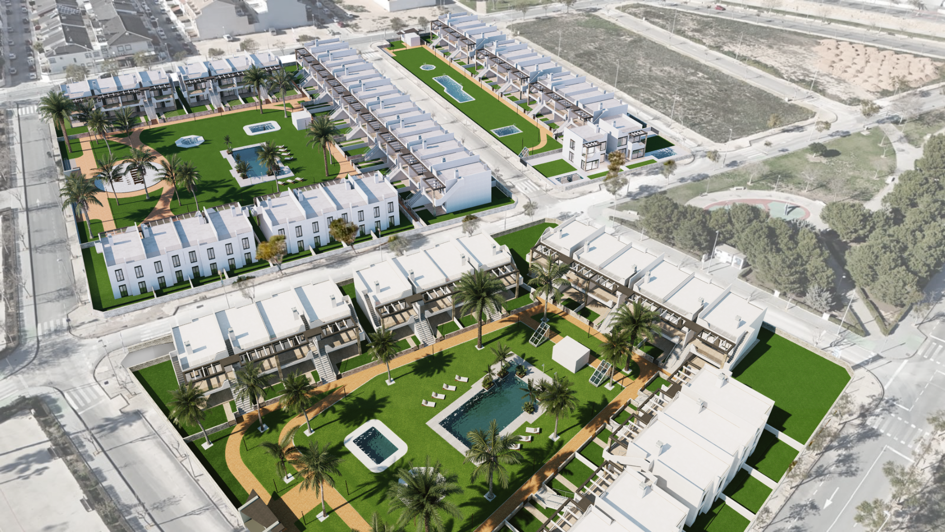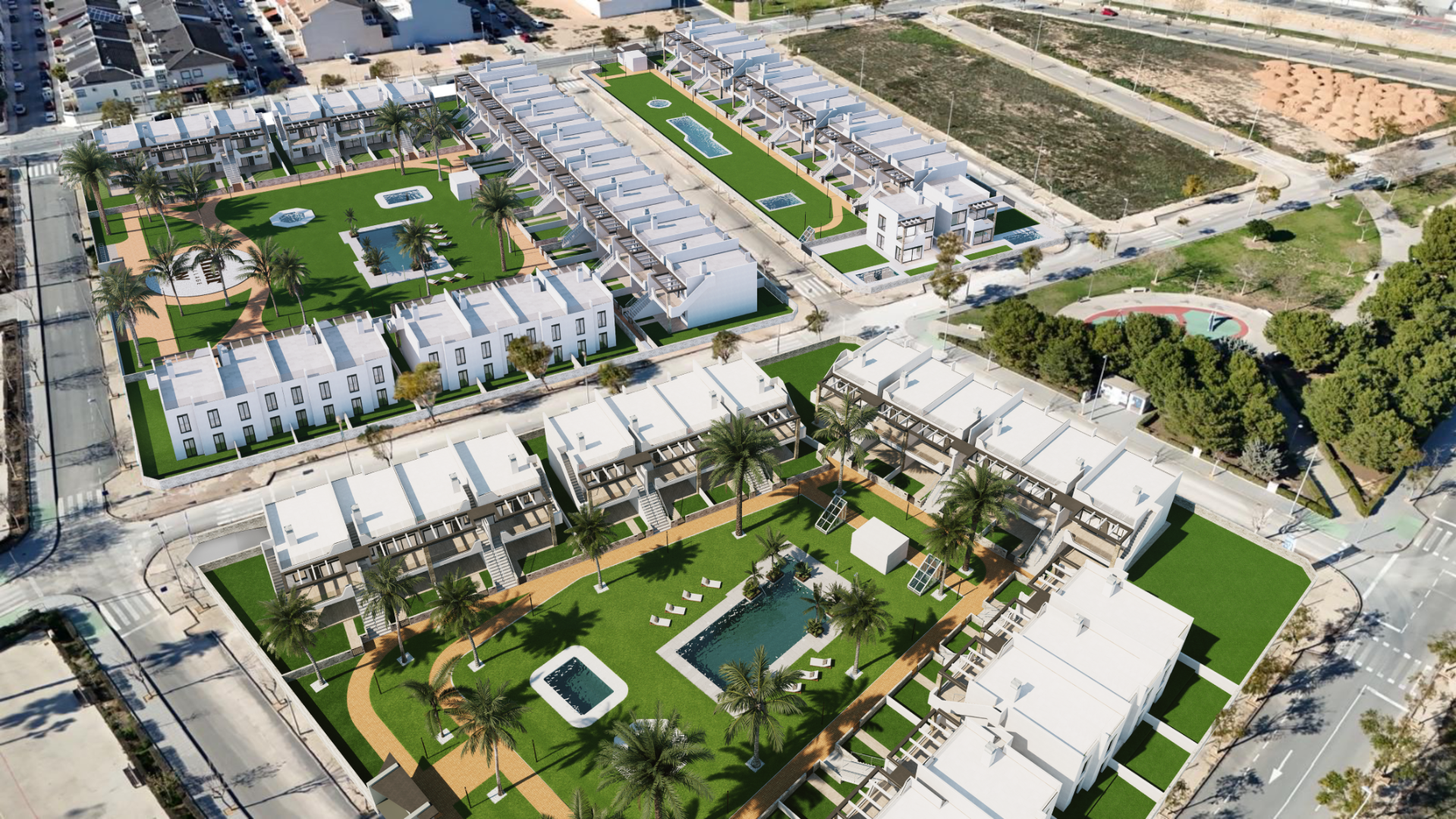 A five-block residential complex with a total of 62 apartments. Ground floors feature a garden, while the first floor boasts a private roof terrace with pre-installation for an outdoor kitchen. The complex boasts a beautiful communal garden and swimming pool, and there is also a fitness room in the basement. Pilar de la Horadada is a typical Spanis...h town that remains vibrant year-round. All conceivable amenities are within walking distance. Over the years, it has grown into an international community due to its easy accessibility and proximity to the sea and golf courses. The apartments are delivered with finished bathrooms, pre-installed appliances in the kitchen, pre-installed air conditioning, and underground parking. Murcia and Alicante airports are approximately 30 minutes away for Murcia and 50 minutes for Alicante, respectively.