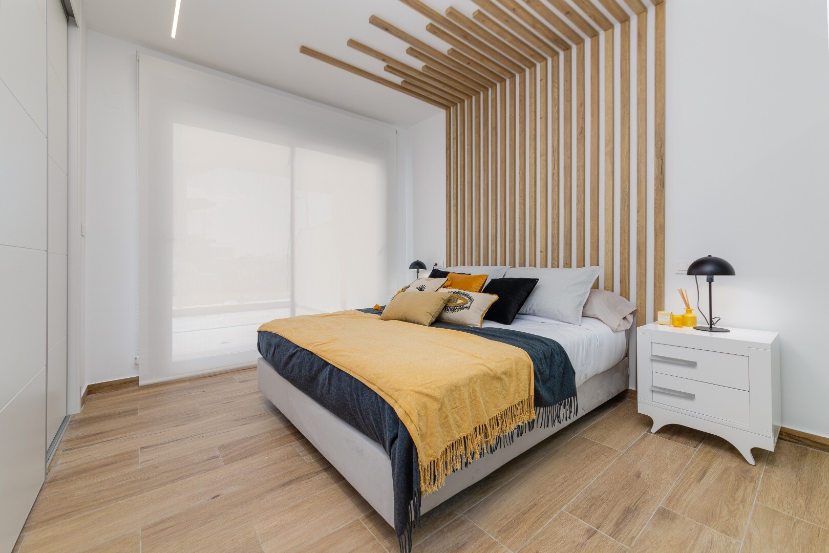 Solarium of 81m2. Residence with 3 blocks and a total of 78 apartments. The apartments on the fourth floor have a private solarium allocated on the roof. She has a communal garden and swimming pool. Alicante airport can be reached in less than an hour and Murcia - Corvera in 30 minutes.