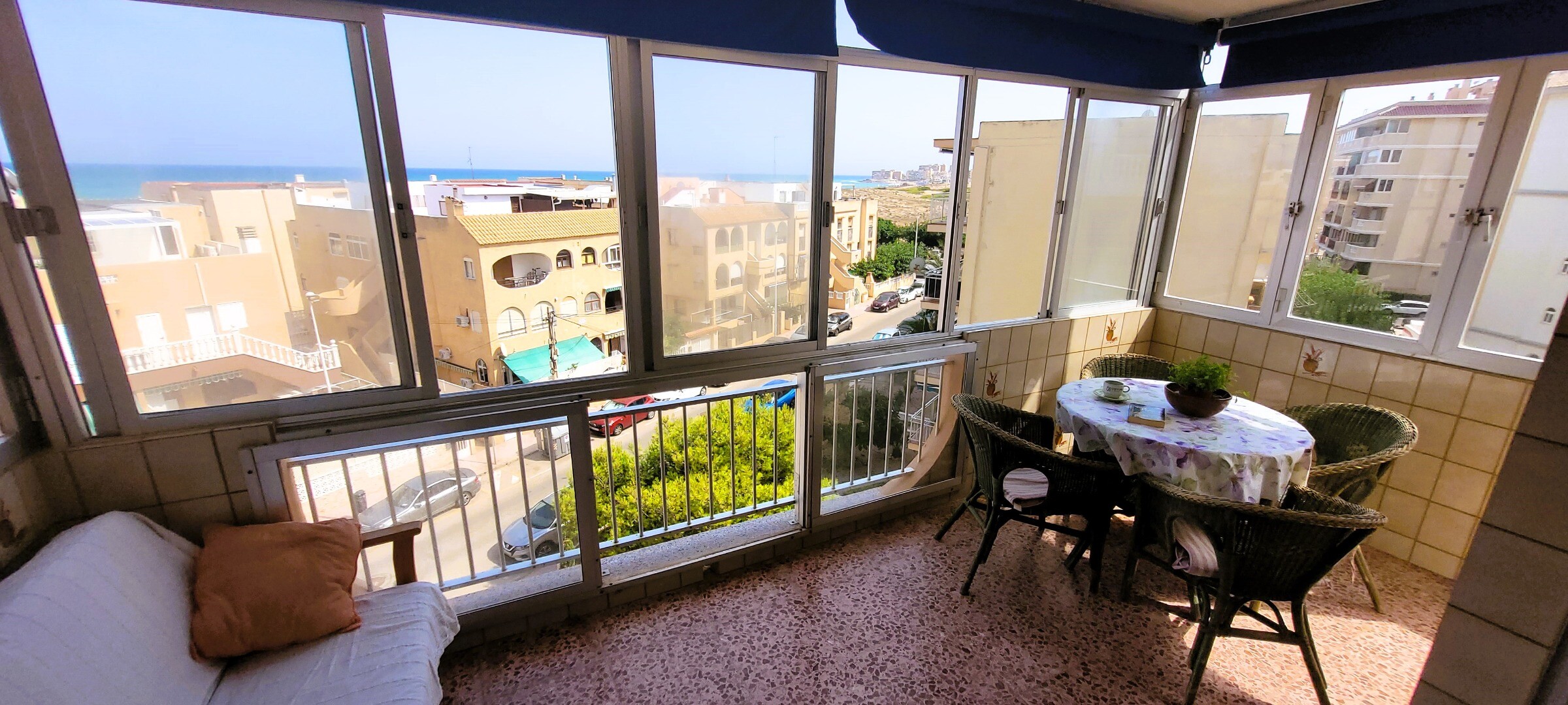 Can you imagine waking up every morning to the sea breeze and enjoying your coffee on a spacious terrace with unobstructed sea views? We offer you this property located in La Mata, one of the most sought-after areas of Torrevieja, known for its fine sandy beaches, peaceful atmosphere and all amenities within easy reach. The flat has 2 double bedroo...ms, 1 bathroom, a separate kitchen with utility room and a living-dining room with access to a glazed terrace with frontal views of the sea and the Parque del Molino. The property faces south-east, perfect for relaxing or enjoying the sunset. The building has a lift, as well as communal parking and storage room. In addition, from its top floor terrace you will have spectacular panoramic views of the sea and the surrounding area. All this just 250 metres from La Mata Beach, restaurants, supermarkets, public transport and green areas. Ideal property as a permanent residence, holiday home or investment. Contact us for more information and to arrange a viewing.