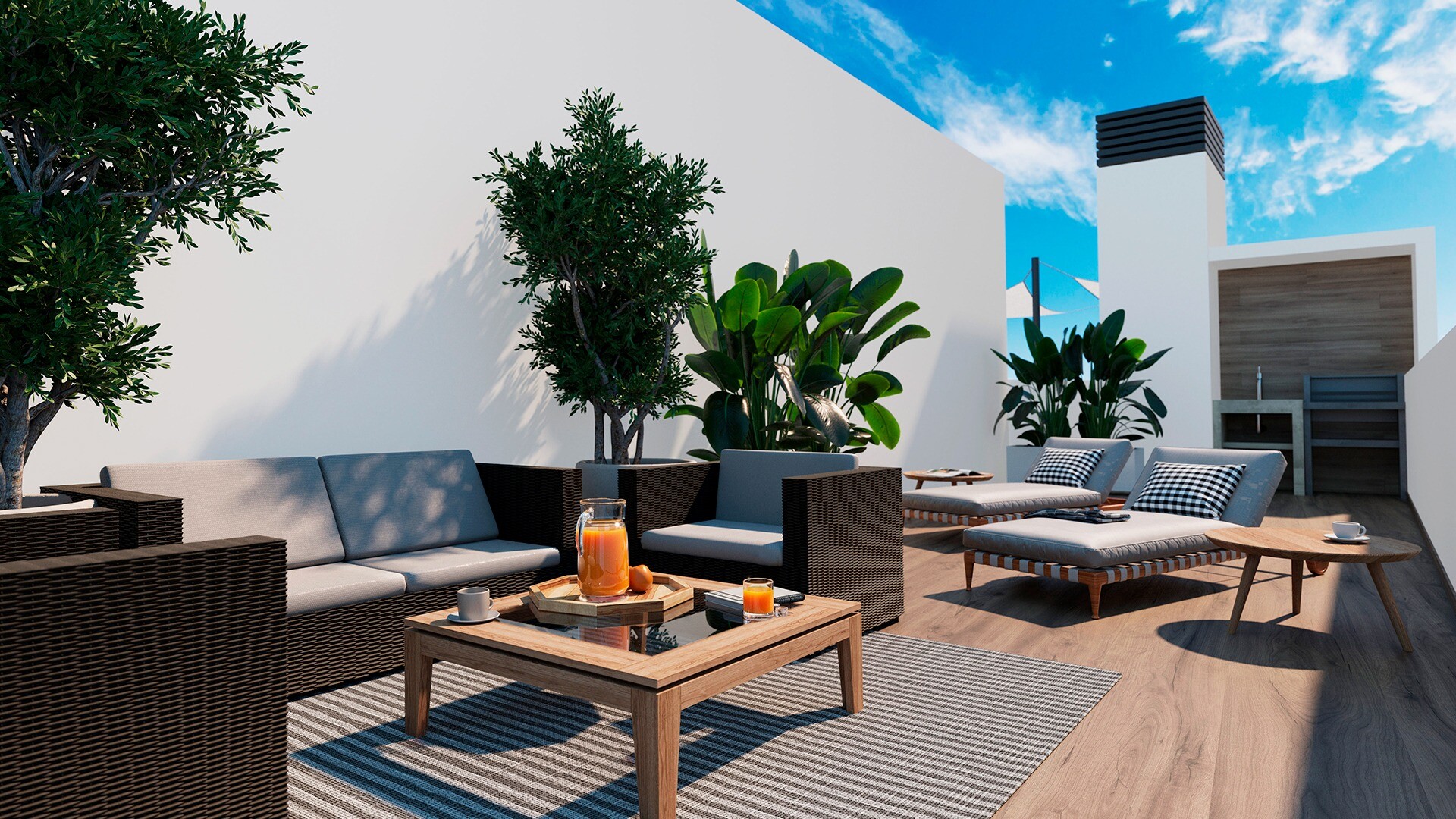 The property offers 69 m² of built area distributed across 2 bedrooms with fitted wardrobes, 2 full bathrooms, and a bright living-dining room with open-plan kitchen. Its 35 m² of outdoor space, divided between a terrace and a priv...ate solarium, allow you to fully enjoy the Mediterranean climate. It also includes pre-installation for ducted air conditioning to ensure year-round comfort.