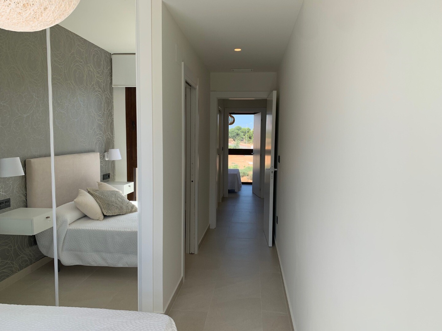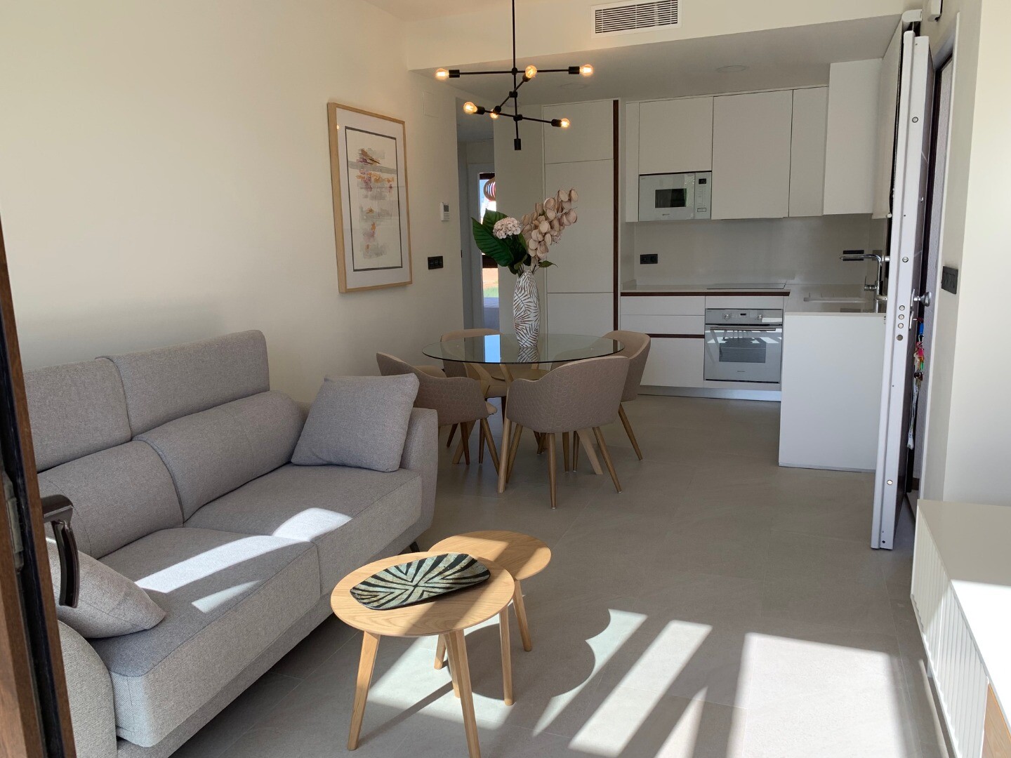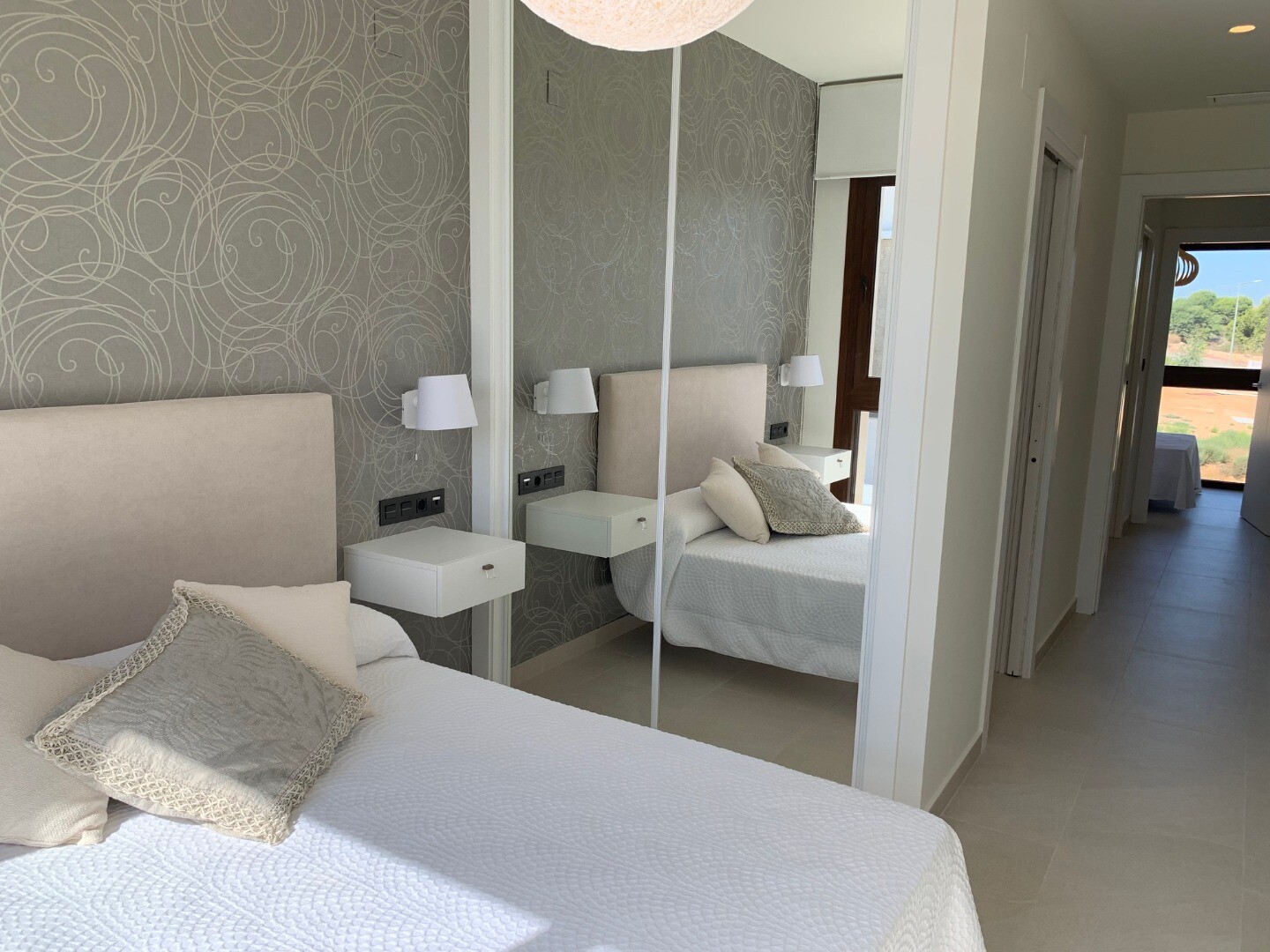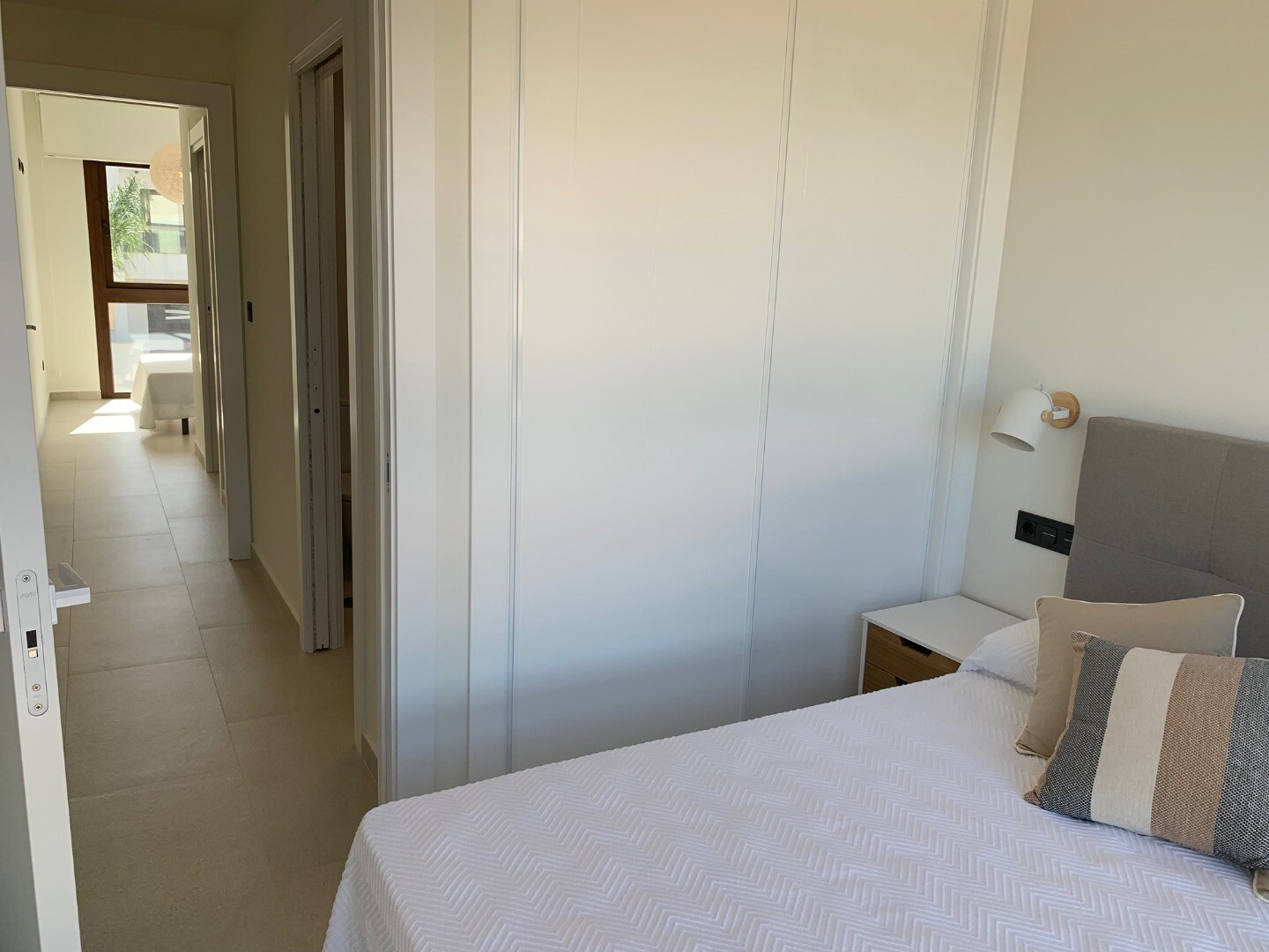 From the solarium you have a beautiful view over the pink salt lake of Torrevieja, as well as a little view of the sea. The balcony overlooks the communal garden and swimming pool.