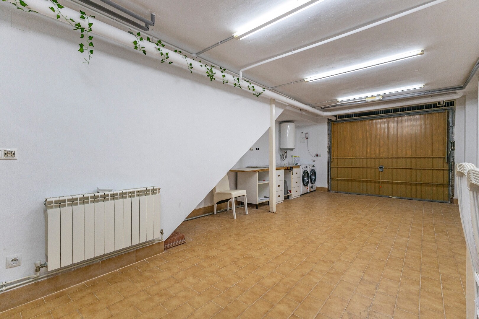 In the basement, there is a large garage of almost 50 m², perfect for multiple vehicles or as a storage or workshop area. Additionally, it is part of a community with a swimming pool, perfect for cooling off and relaxing during the warmer months.