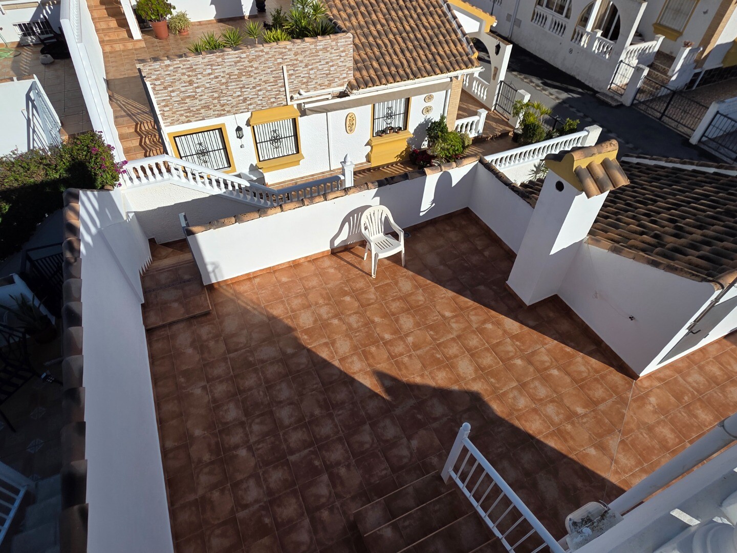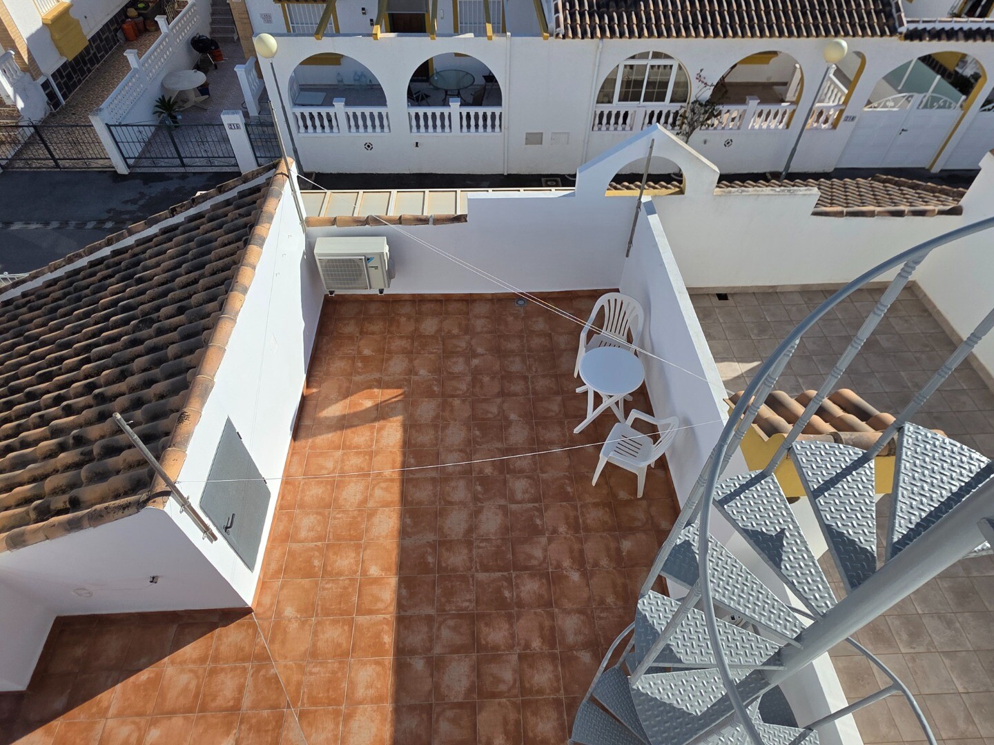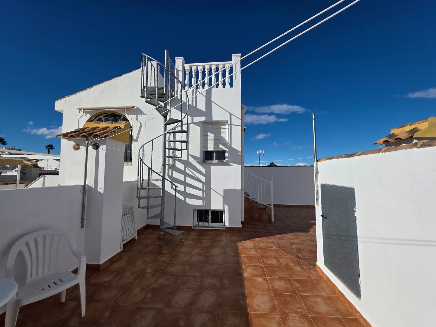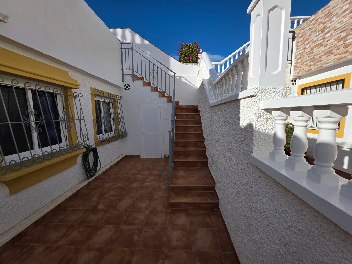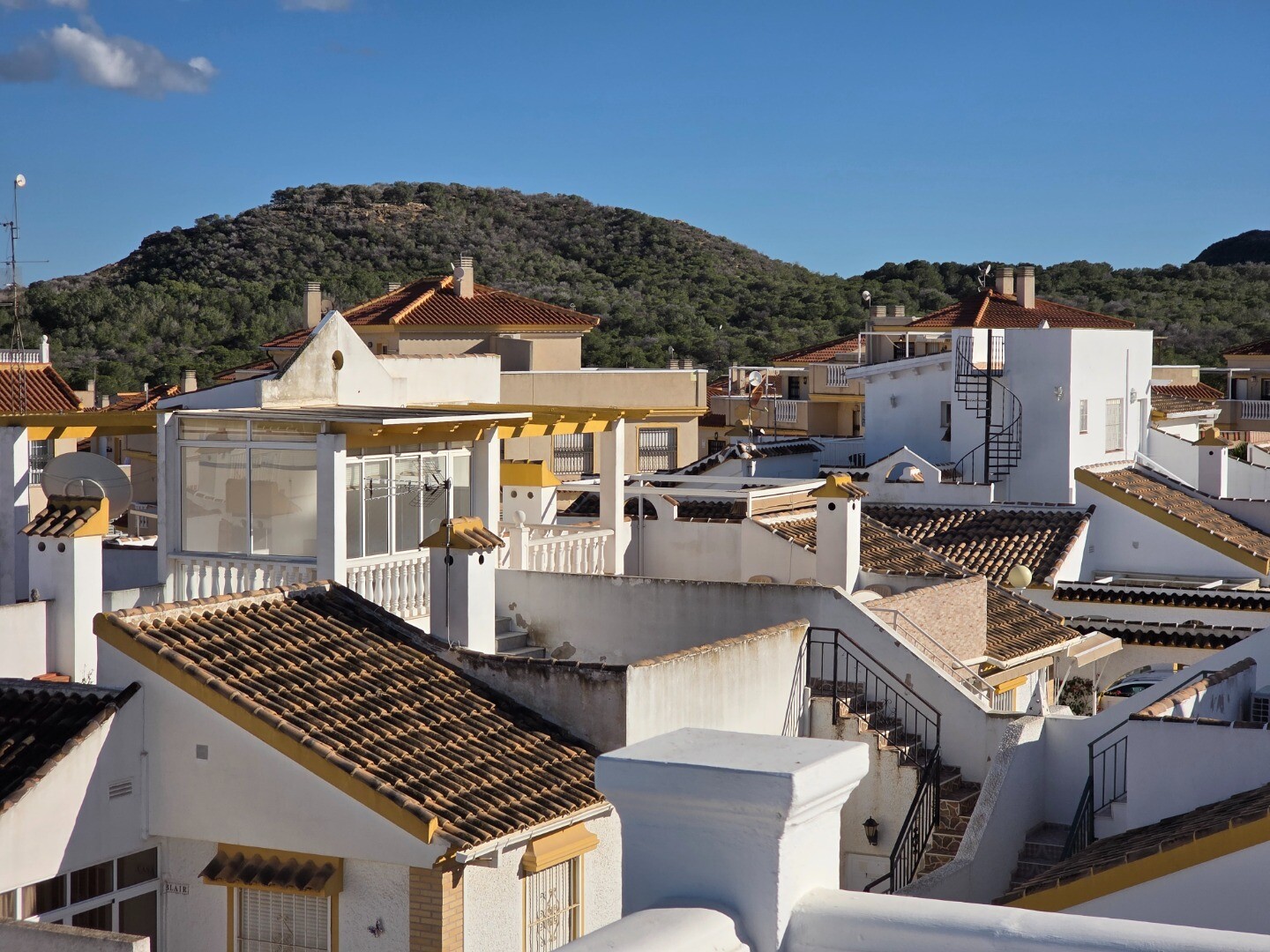 This semi-detached ground-floor corner house has two bedrooms and two bathrooms. A guesthouse has been installed on the roof terrace, and above this guesthouse is another roof terrace, offering panoramic views of the entire valley with partial sea views.