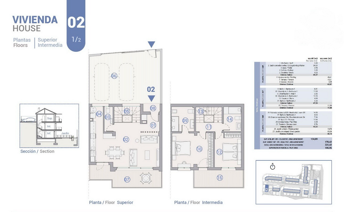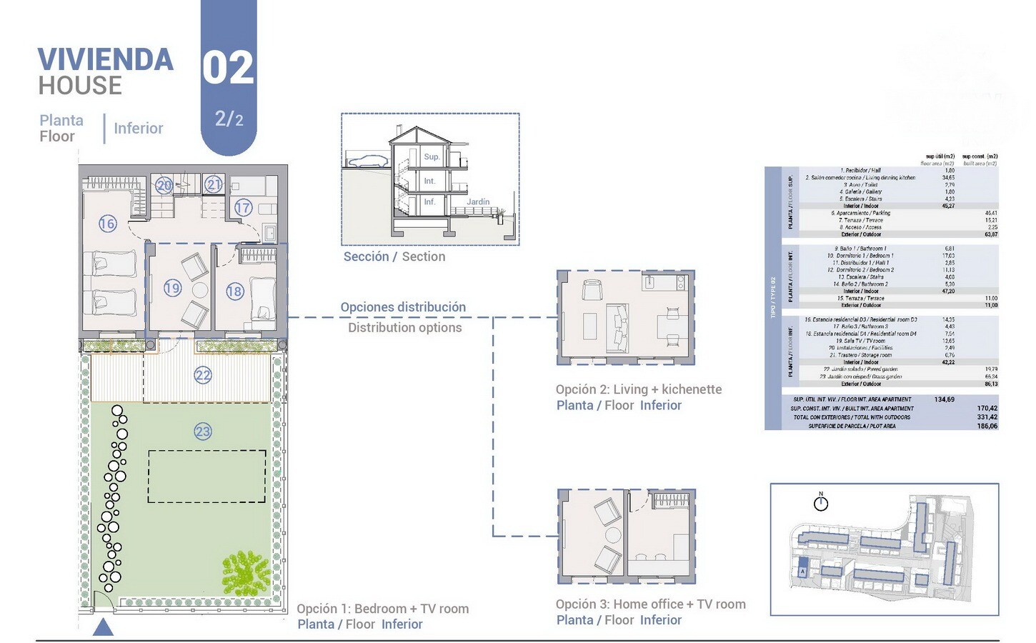 The homes have several terraces with views, parking for two vehicles and a garden with direct access to the common areas. Many of them also have a solarium where you can enjoy evenings outdoors with your friends.