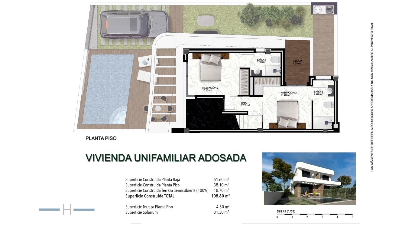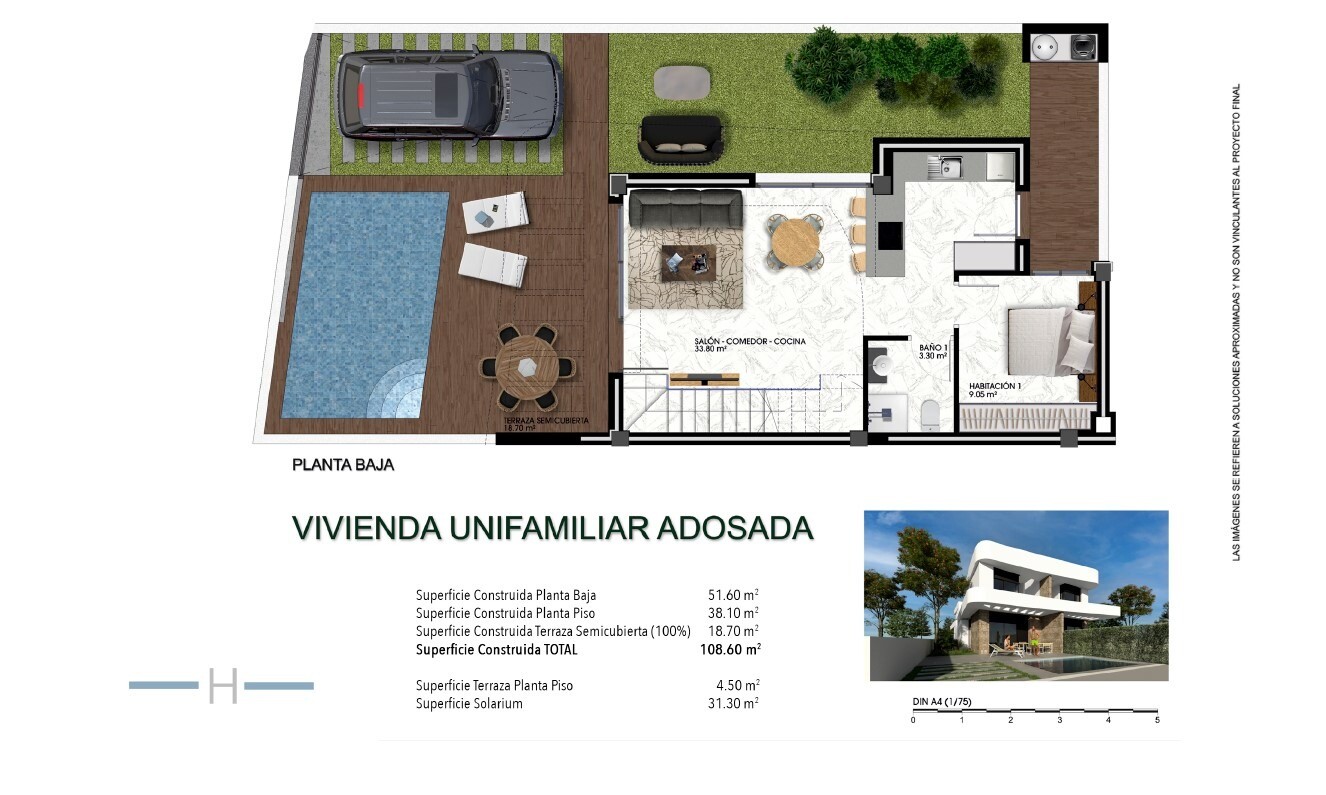 31m2 solarium. Small residence of 32 Quad homes and 4 detached homes in a quiet residential area of Los Montesinos close to all imaginable amenities and golf resorts. Ideal location for those who like to cycle, as there is a very good connection of cycle paths. The different playas can be reached in about 20 minutes by car. Alicante airport in abou...t 30 minutes