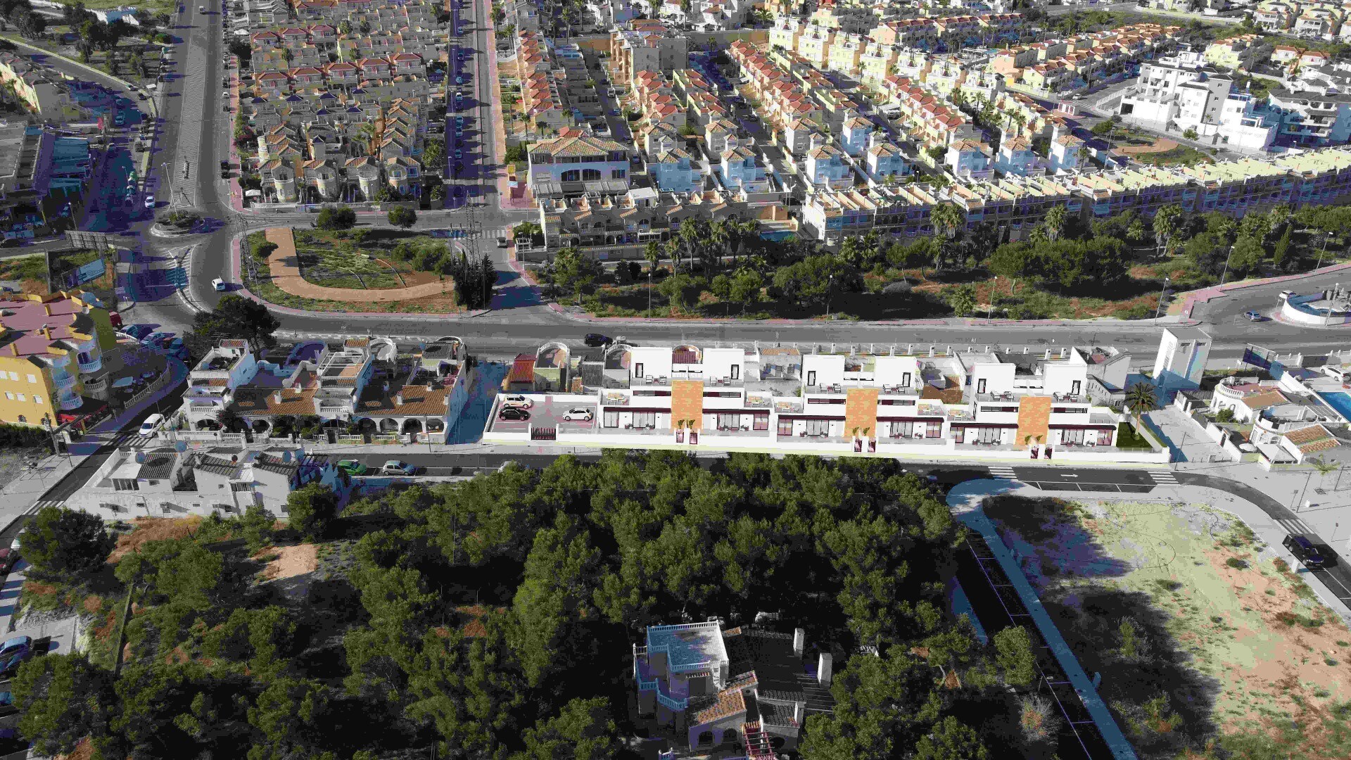 Luxury residential complex located in the area of Orihuela Costa, more precisely near Villamartin, a privileged location surrounded by three beautiful golf courses (Villamartin, Las Ramblas and Campoamor), and just ten minutes from the most beautiful beaches of Orihuela Costa. This makes this area an extraordinary environment to enjoy the sun and... life in Spain. Just a few minutes walk away are a number of amenities including the shopping center “La Fuente” with an abundance of restaurants, bars and shops. The complex consists of 12 houses with 3 bedrooms and 2 bathrooms. These homes feature double orientation terraces, front and back gardens with natural grass, private roof terrace facing south, private 5.5 x 2.5 m swimming pool, and a parking space of your choice included in the price. The villas are built to the highest quality standards, with pre-installation for air conditioning, shower enclosures in the bathrooms, and summer kitchen and shower on the roof terrace.