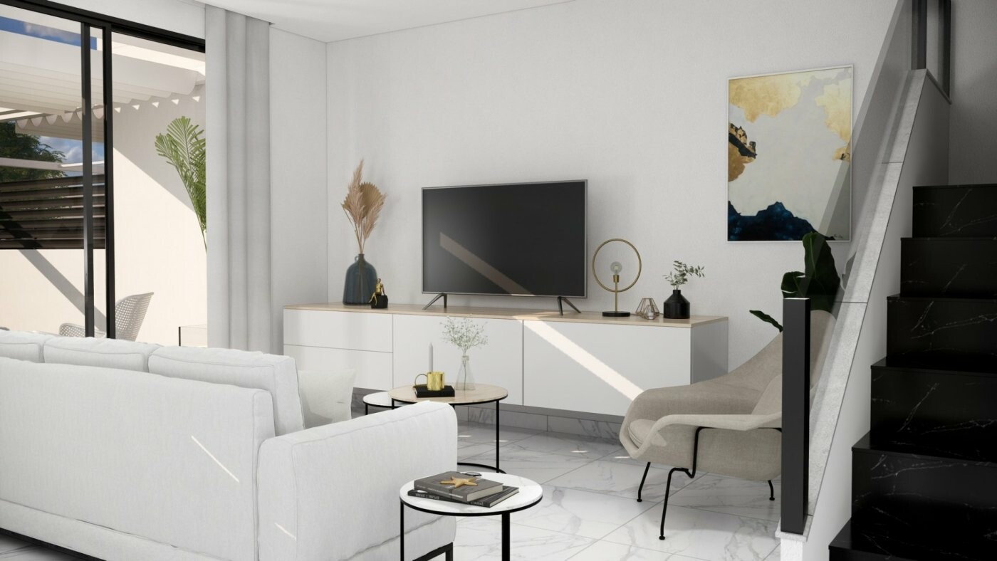 NEW BUILD TOWNHOUSES IN ROJALES New Build modern townhouses in Rojales. Townhouses has 3 bedrooms, 2 bathrooms, open plan kitchen, living room with direct access to the terrace, parking space. An options for a solarium and a private pool at an extra cost. There a 3 golf courses nearby and the blue flag beaches are just a short 10 minute drive away.... Rojales it is a lovely village with all services such as supermarkets, pharmacies, banks, restaurants and natural park located very close to the villas. There are several golf courses close by as well as water parks in nearby Rojales and Torrevieja. Alicante [amp;] Murcia airports are 45 minutes drive away.