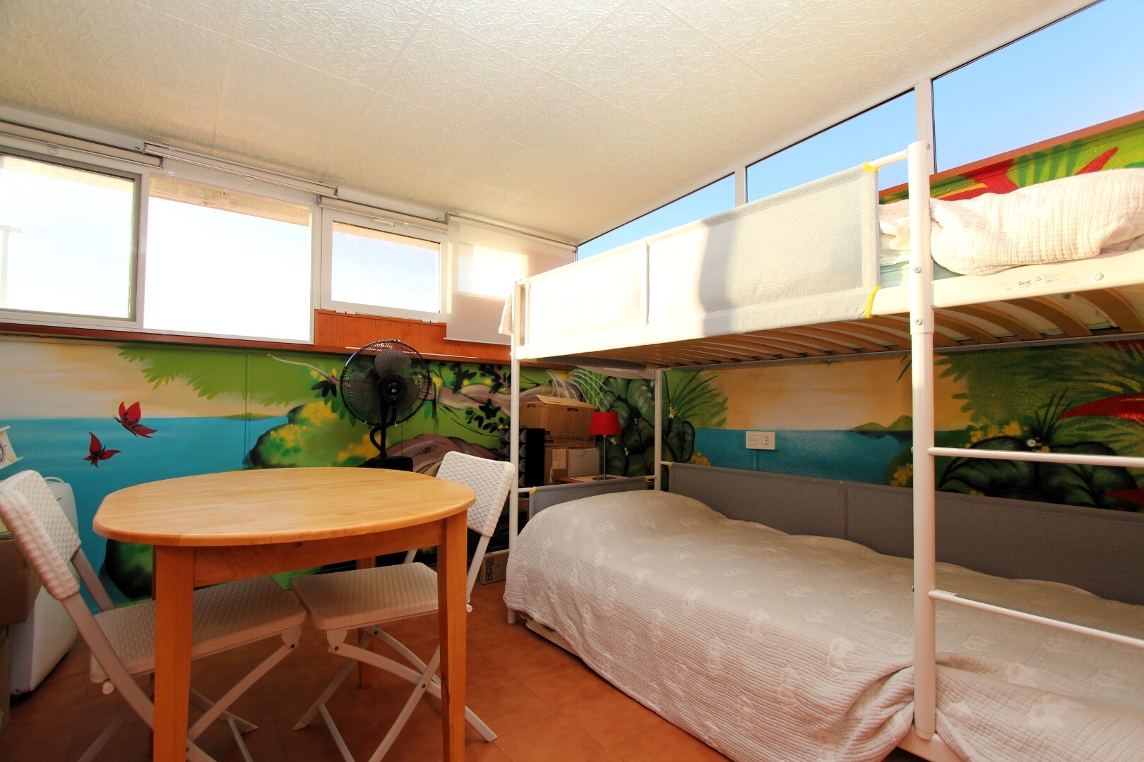 Inside you will find 3 bedrooms, two of them located on the ground floor for added convenience, and a ...third bedroom on the upper floor next to the access to the private solarium, an exclusive space for sunbathing or creating a chill-out area. It has 2 full bathrooms with showers, one on each floor, offering maximum comfort for the whole family and visitors.