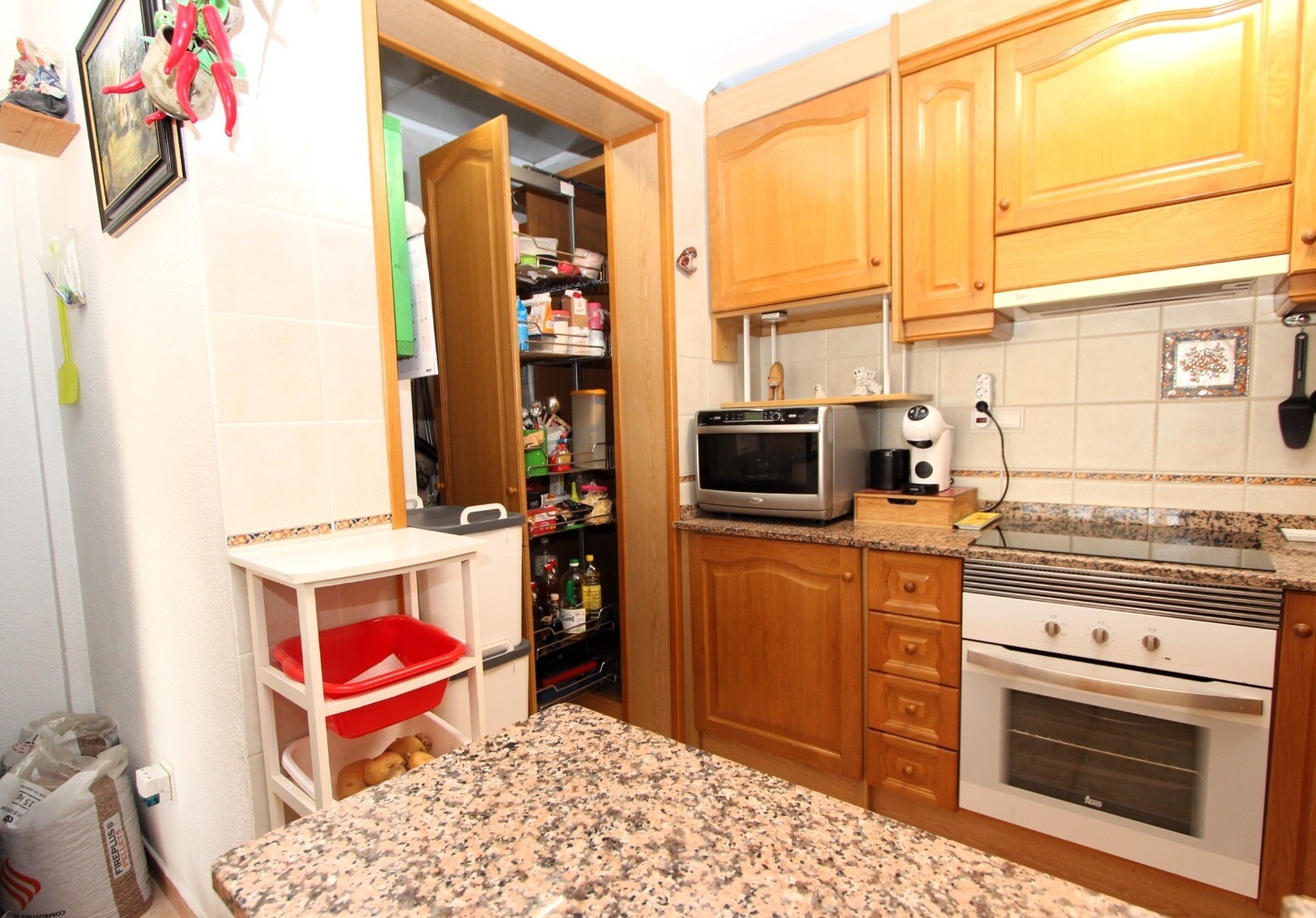 The property is sold semi-furnished, allowing you to move in with ease. It is also part of a development with a communal swimming pool, ideal for cooling off and enjoying the surroundings.