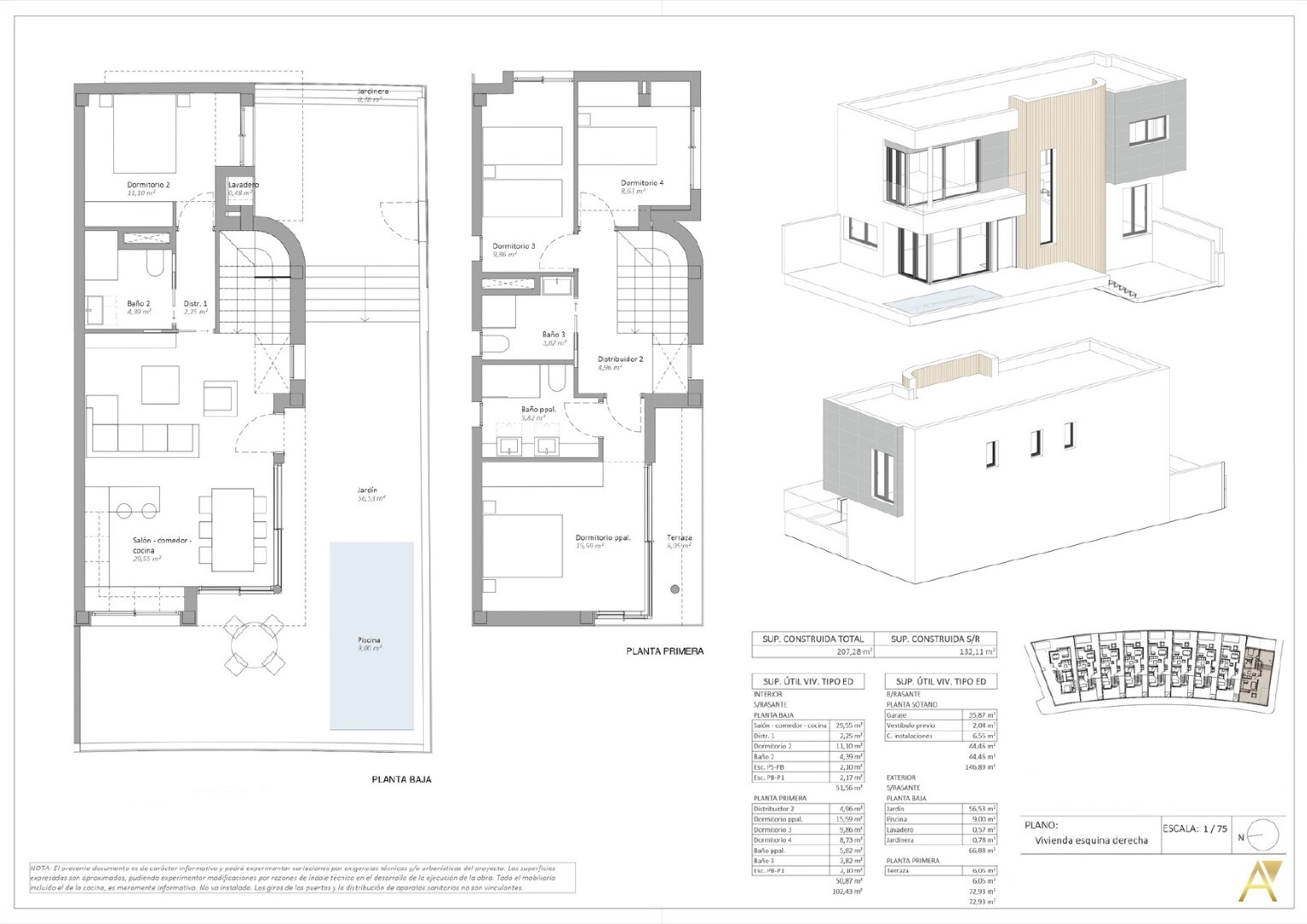 These modern, detached villas are located in the exclusive Los Jardines residential area and offer living spaces ranging from 188 m² to 207 m², designed to ensure spaciousness, comfort, and a functional layout in every room.