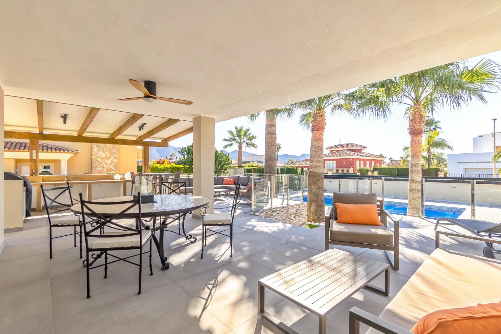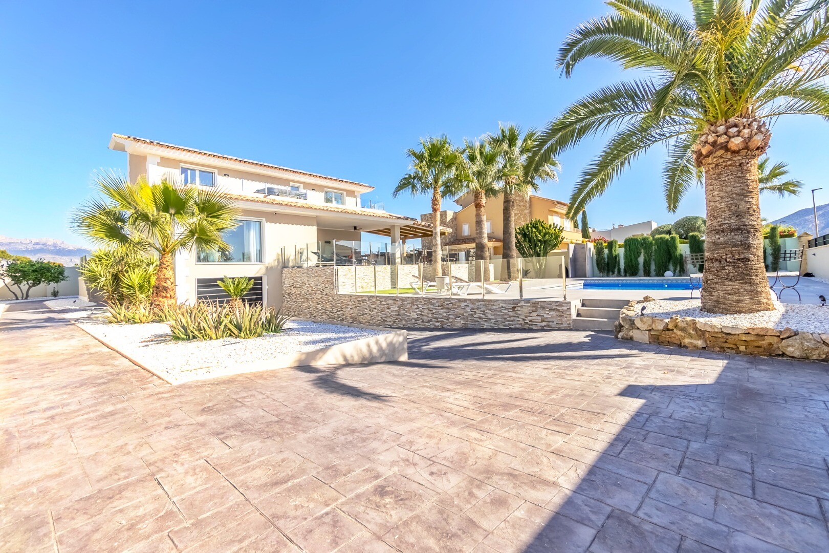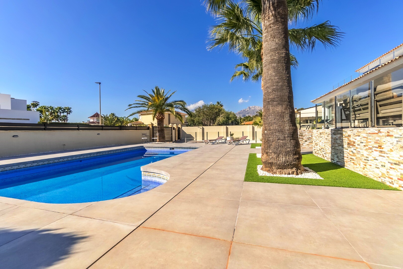 Fully renovated in 2023, this modern 350 m² villa sits on a private 1,250 m² plot in a quiet residential area just 10 minutes from the beach and 15 minutes from Benidorm. Sold fully furnished and ready to move in.