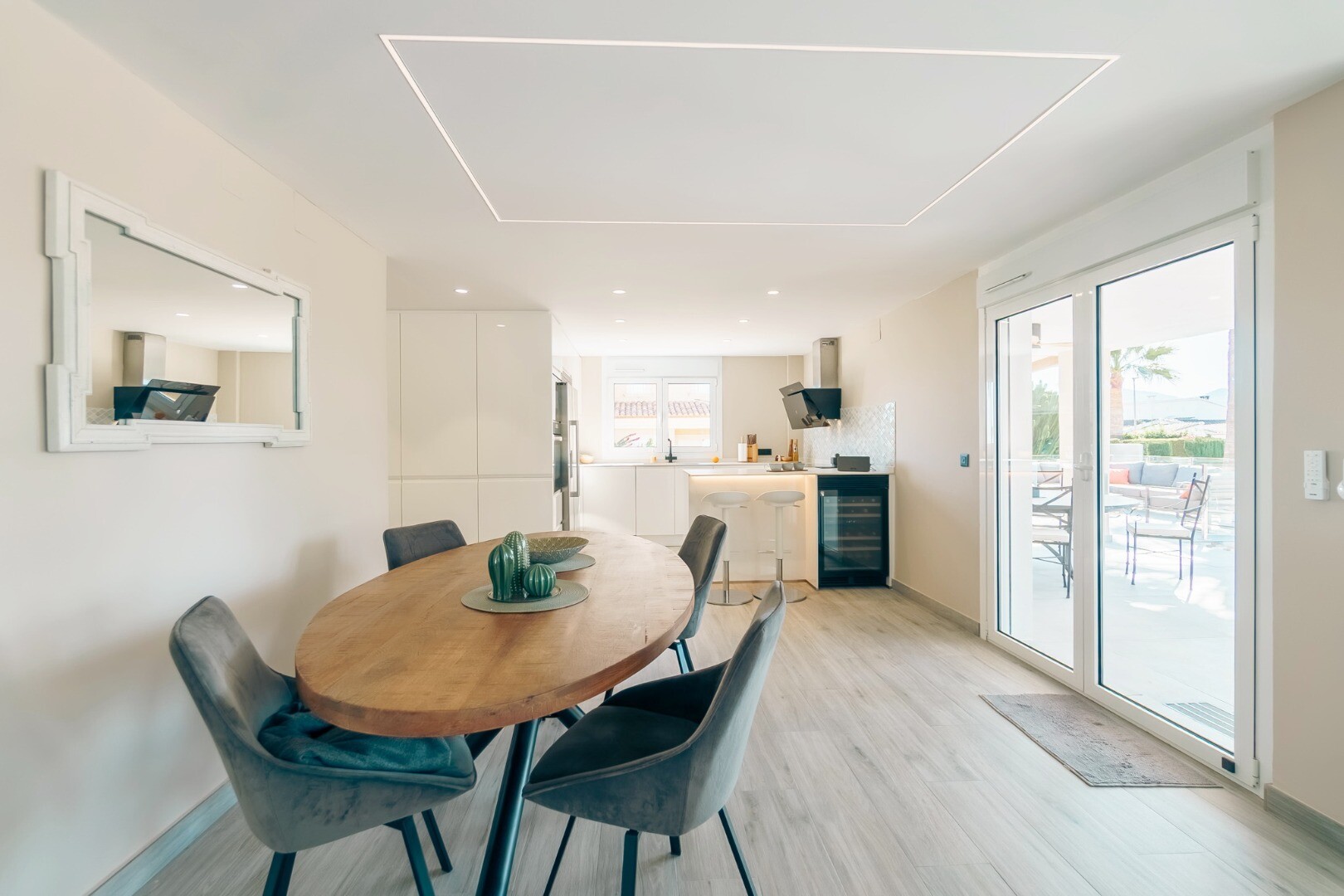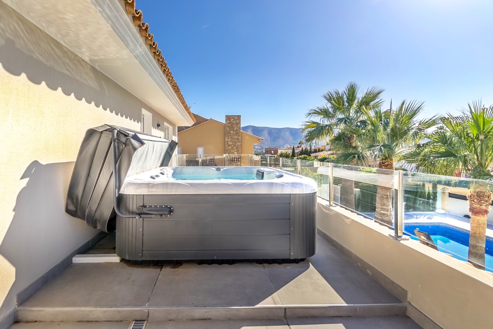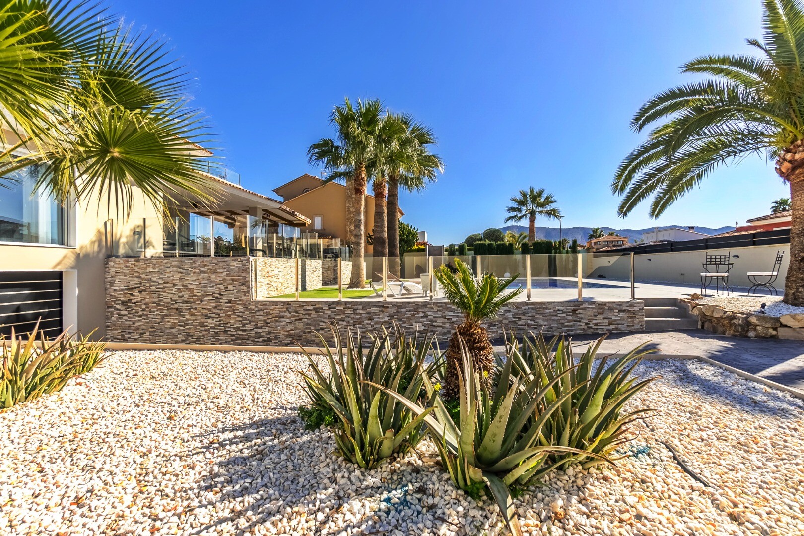 Fully renovated in 2023, this modern 350 m² villa sits on a private 1,250 m² plot in a quiet residential area just 10 minutes from the beach and 15 minutes from Benidorm. Sold fully furnished and ready to move in.