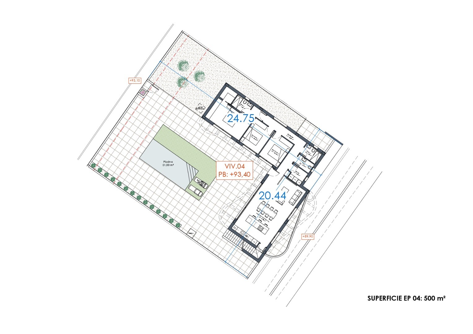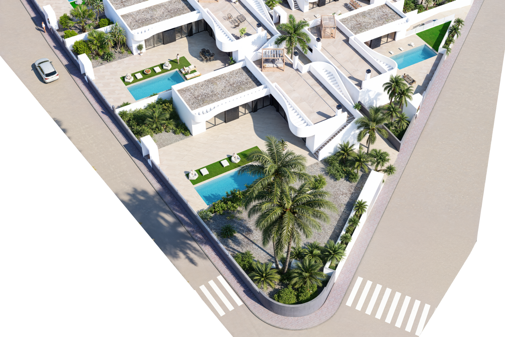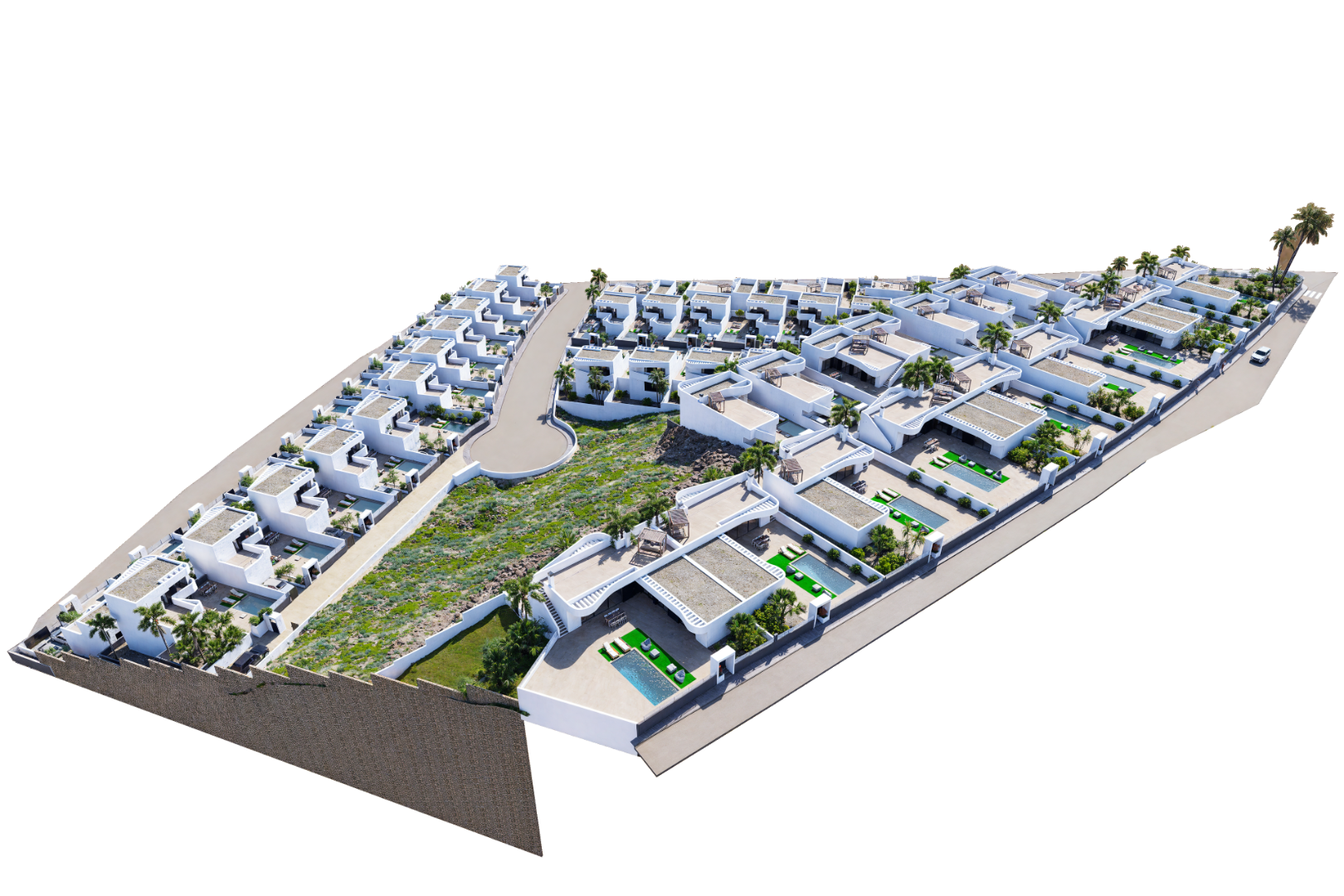 Three house models are offered in different locations. The houses on larger plots have a 7x3m swimming pool. The smaller ones have a 6x3m pool. The houses on the larger plots include a basement as standard, although this is optional for most. The houses have pre-installed air conditioning via ducts.