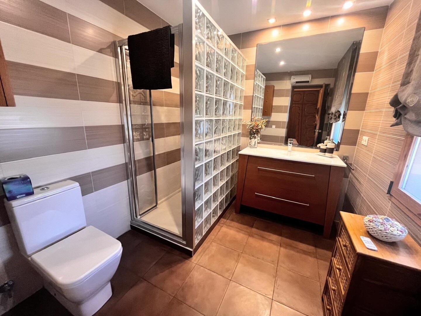 MAIN HOUSE: 3 bedrooms (one currently used as a dressing room), 2 bathrooms, separate kitchen, large living room with fireplace and access to a spacious terrace with views and direct access to the solarium.