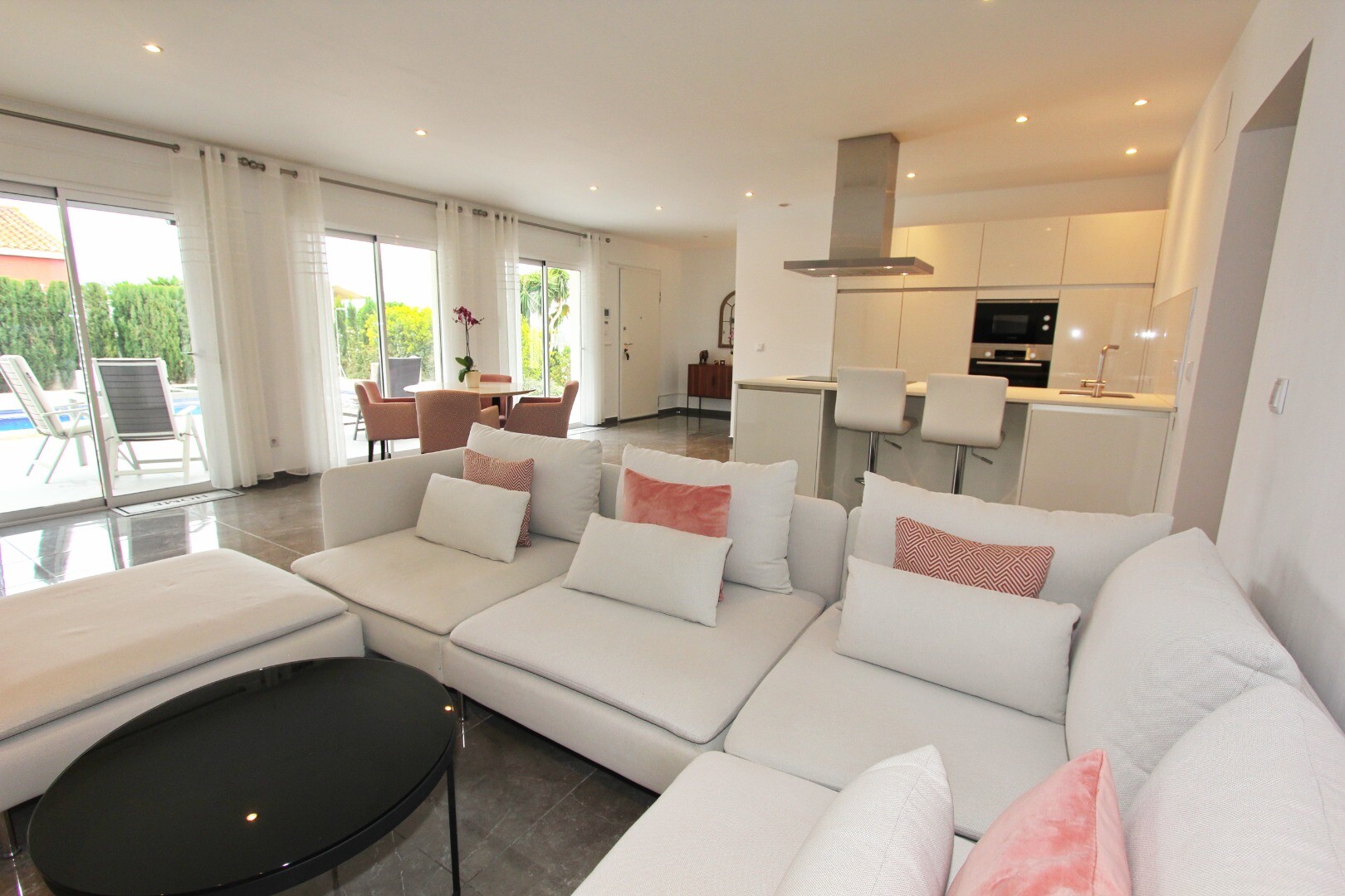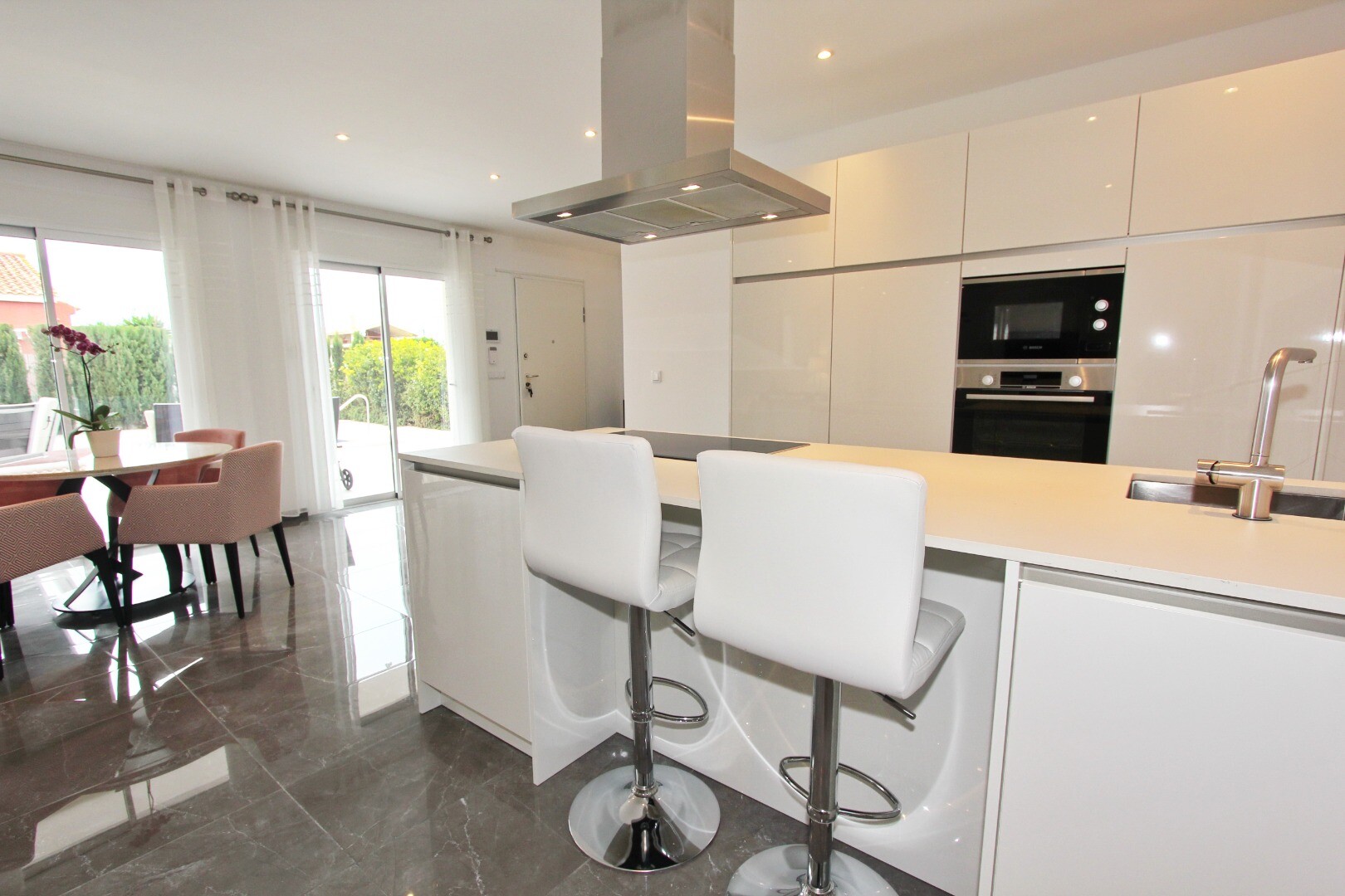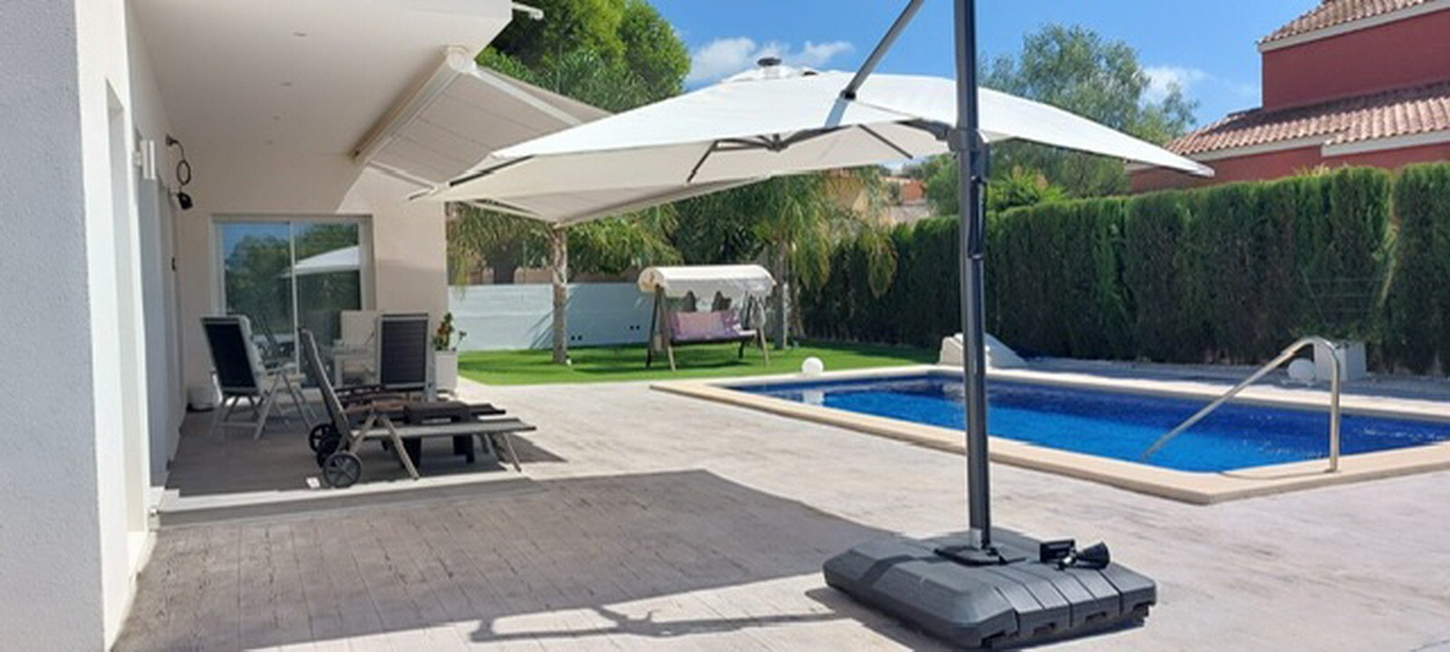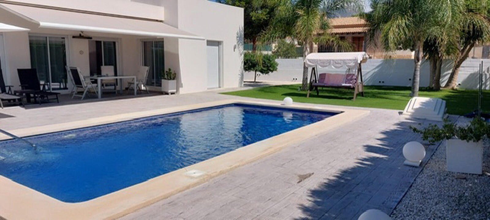 Welcome to your rural sanctuary! This stylish all on one level villa boasts sleek modern finishes and an abundance of natural light that dances through the generous floor to ceiling windows. Take pleasure in the gourmet kitchen, a haven for aspiring chefs, and savor your morning coffee on the private poolside terrace, where views across the garden ...and swimming pool unfold before your eyes. Nestled in a rural hamlet, this private villa is your gateway to a tranquil lifestyle, surrounded by your own ample garden with lush vegetation and fruit trees, an ideal place to dine “al fresco” or sip cocktails poolside! The town of Mutxamel is a mere 7 minutes drive away and the beach 10 minutes. Mutxamel and Busot have a busting “Spanish Village” feel to them and boast many local artisan shops, branded supermarkets and weekly fruit and vegetable markets too!.