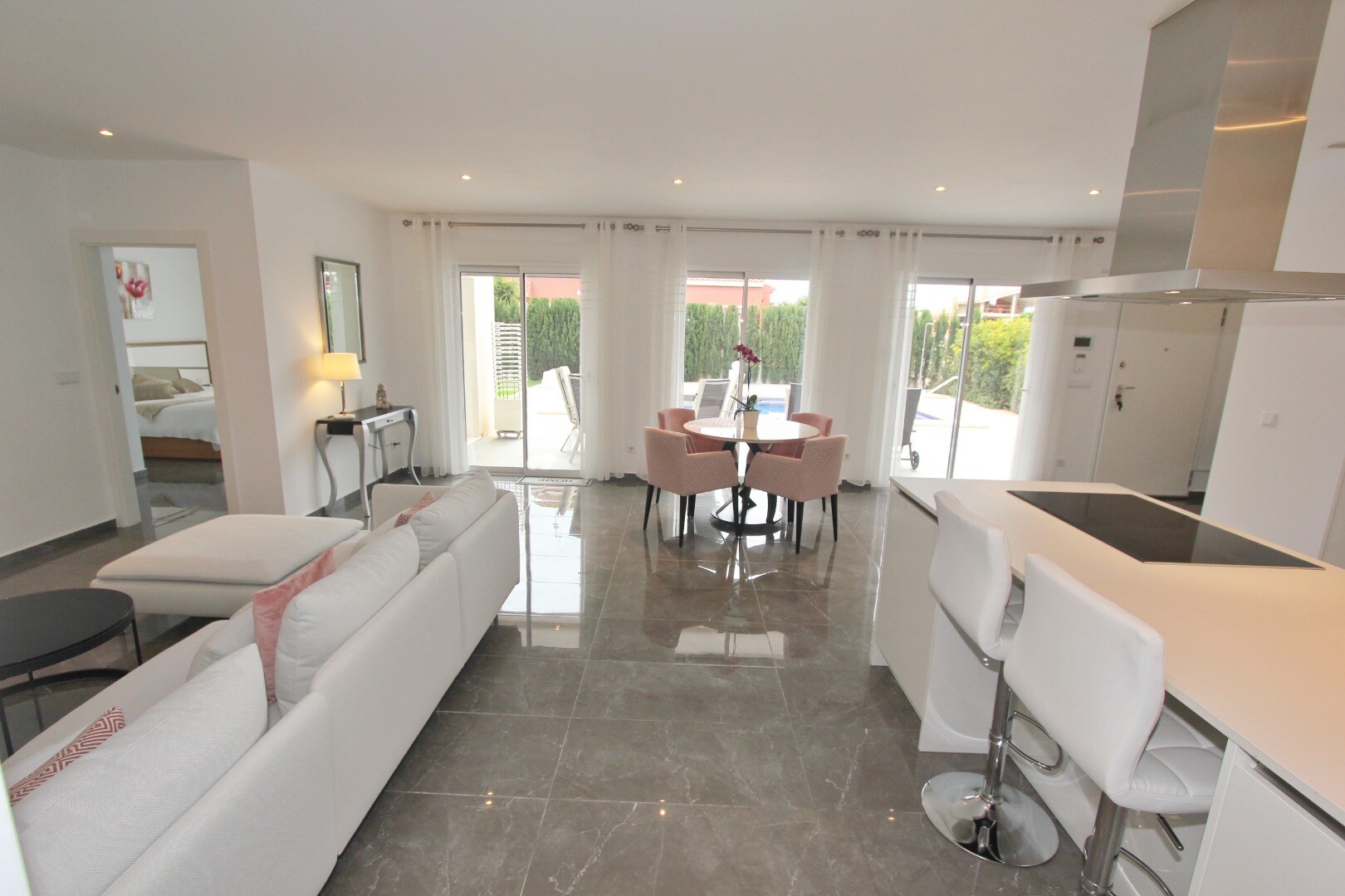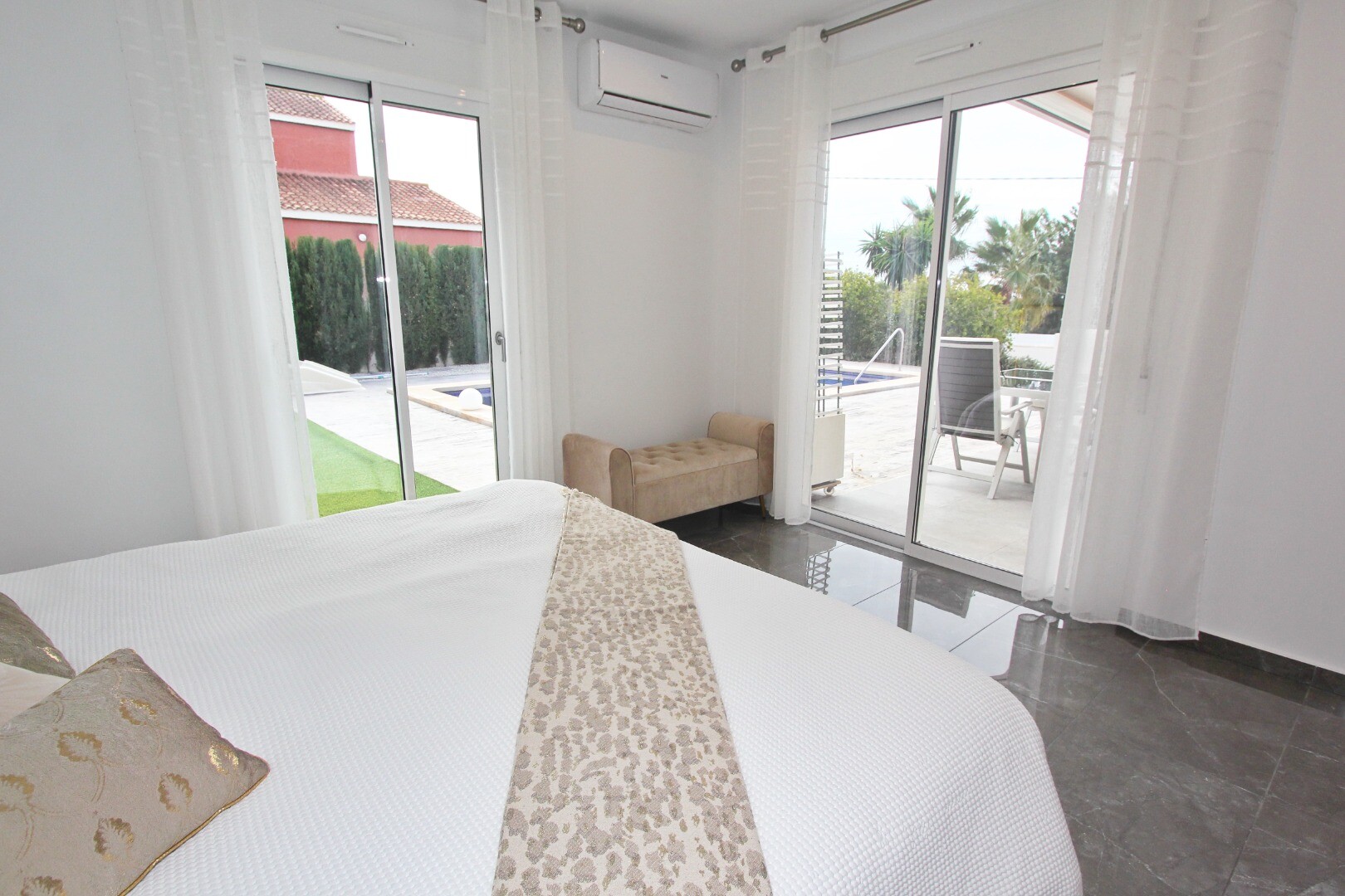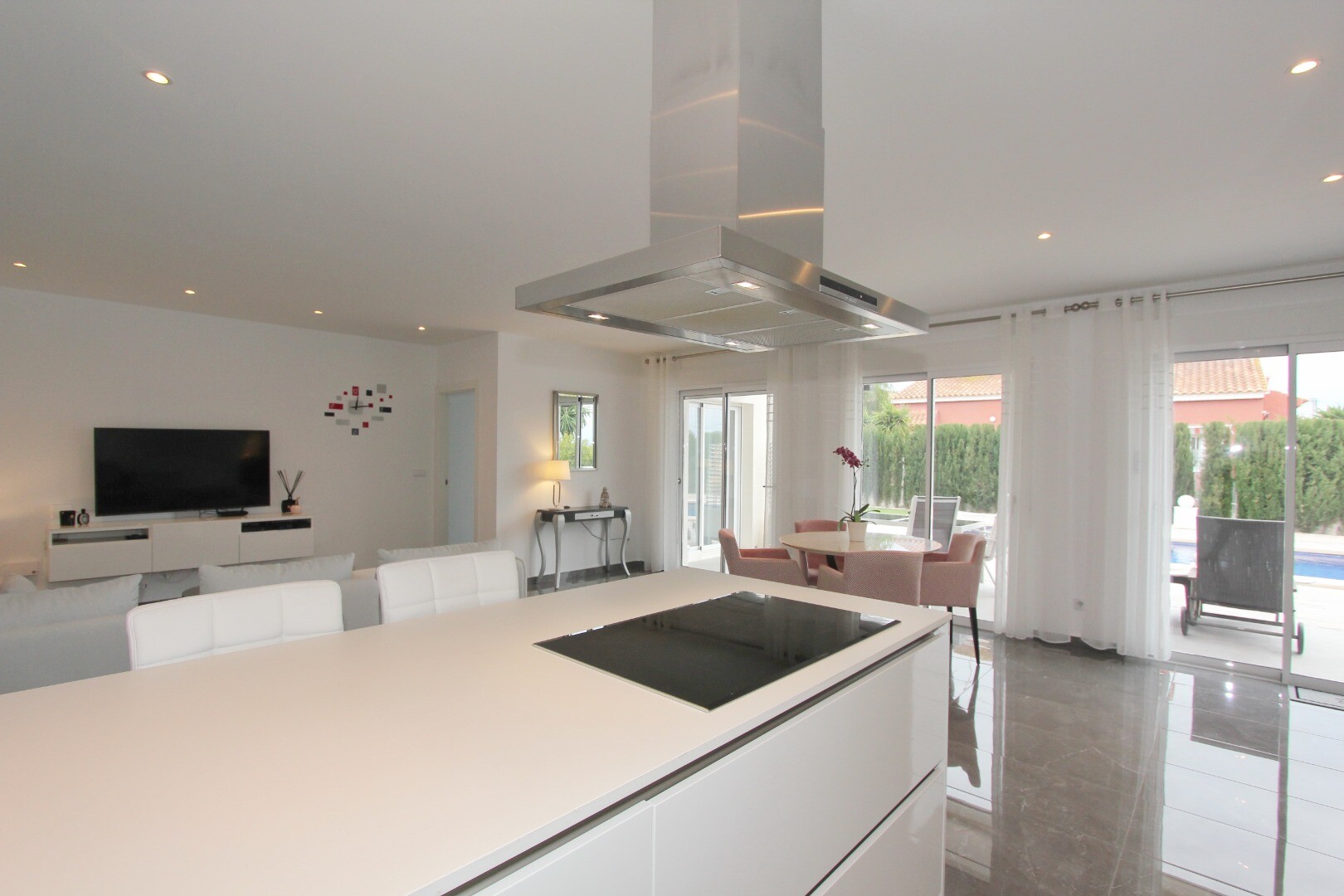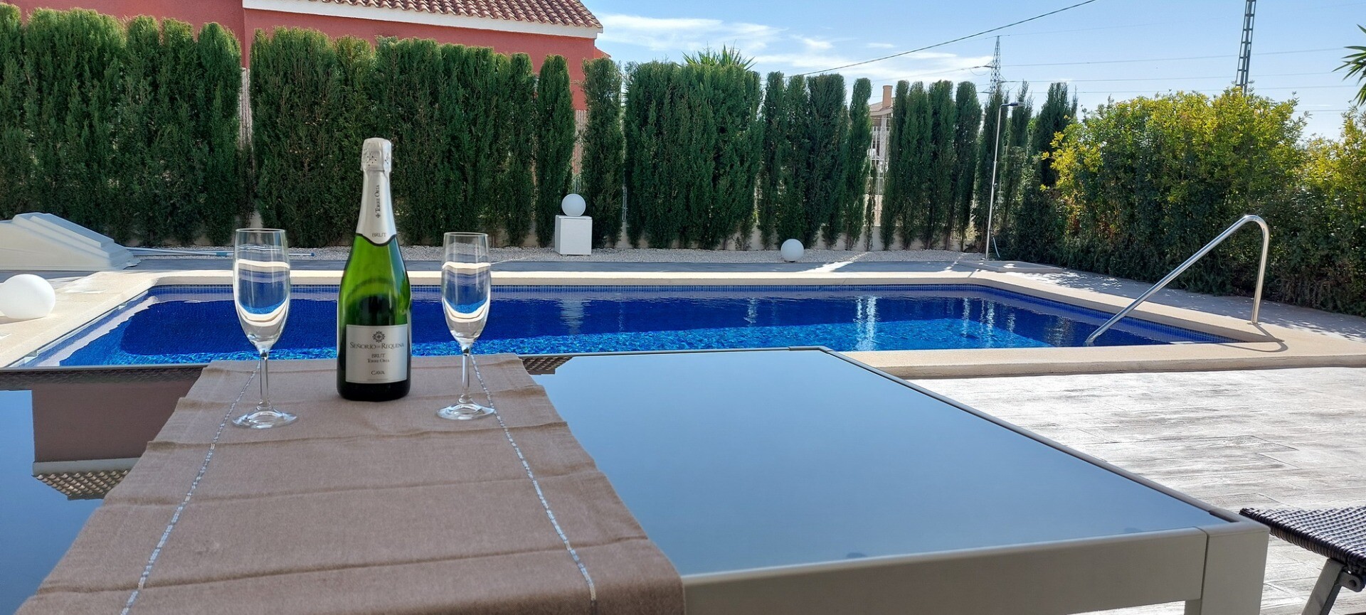 Welcome to your rural sanctuary! This stylish all on one level villa boasts sleek modern finishes and an abundance of natural light that dances through the generous floor to ceiling windows. Take pleasure in the gourmet kitchen, a haven for aspiring chefs, and savor your morning coffee on the private poolside terrace, where views across the garden ...and swimming pool unfold before your eyes. Nestled in a rural hamlet, this private villa is your gateway to a tranquil lifestyle, surrounded by your own ample garden with lush vegetation and fruit trees, an ideal place to dine “al fresco” or sip cocktails poolside! The town of Mutxamel is a mere 7 minutes drive away and the beach 10 minutes. Mutxamel and Busot have a busting “Spanish Village” feel to them and boast many local artisan shops, branded supermarkets and weekly fruit and vegetable markets too!.
