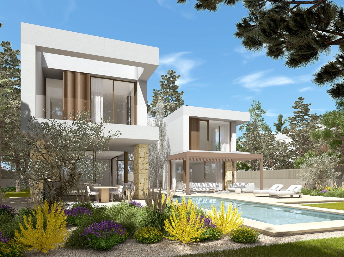 12 luxurious modern Contemporary Style villas set within a mere 100 metres from the coves and beaches of Las Rotas in Denia - the sound of the waves gently lapping the shore can be heard from each of the 12 villas!
